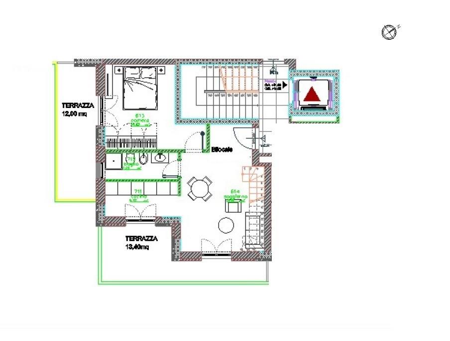 L'appartamento è posto al sesto piano: composto da soggiorno con cucinotto a vista, 1 camere, un bagno, un terrazzo a livello e balcone, collegato tramite scala interna al superattico con ampi terrazzi a livello con vista emozionante su San Pietro.
