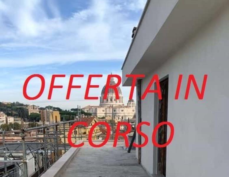 L'appartamento è posto al sesto piano: composto da salone, cucinotto, 2 camere, due bagni, un terrazzo a livello e balcone, collegato tramite scala interna al superattico con ampi terrazzi a livello con vista emozionante su San Pietro.