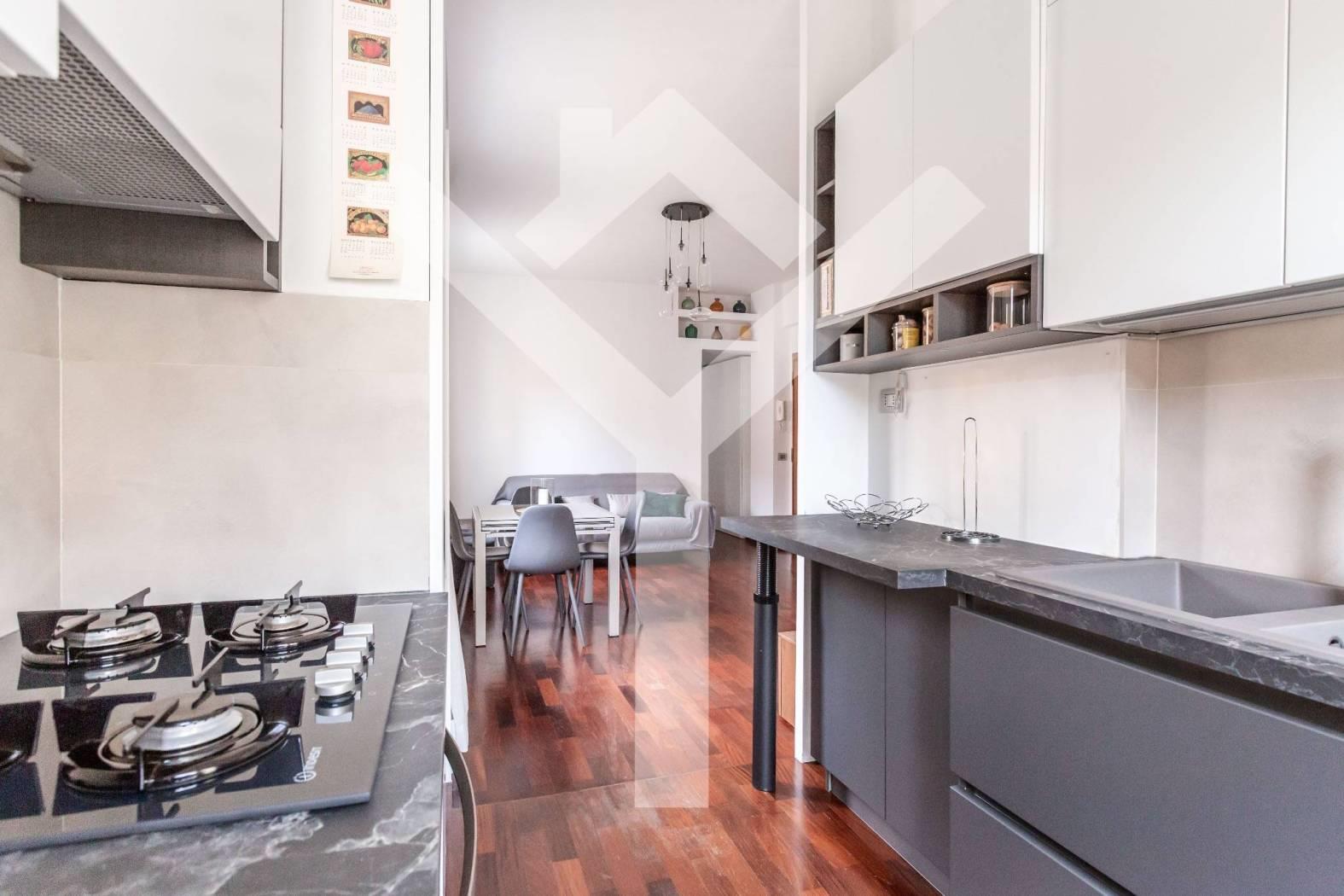 Lo stato di conservazione dell'attico è ottimo, grazie alla costante cura e manutenzione del proprietari. L'attico gode di una doppia esposizione, con balcone e terrazzo presenti su entrambi i lati dell' edificio. Questo permette di godere di una vista panoramica e di una buona luminosità naturale in ogni ambiente. La cucina è completamente arredata, con elettrodomestici moderni e funzionali.