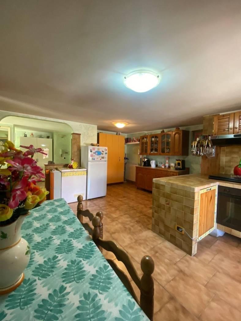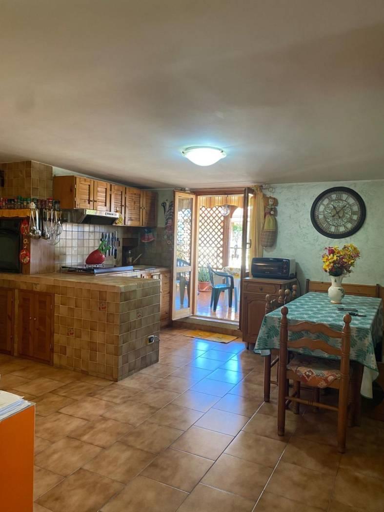 Dalla zona cucina è possibile accedere ad una veranda aperta, realizzata in legno e dotata di tende da sole, ideale per vivere lo spazio esterno in totale comfort.