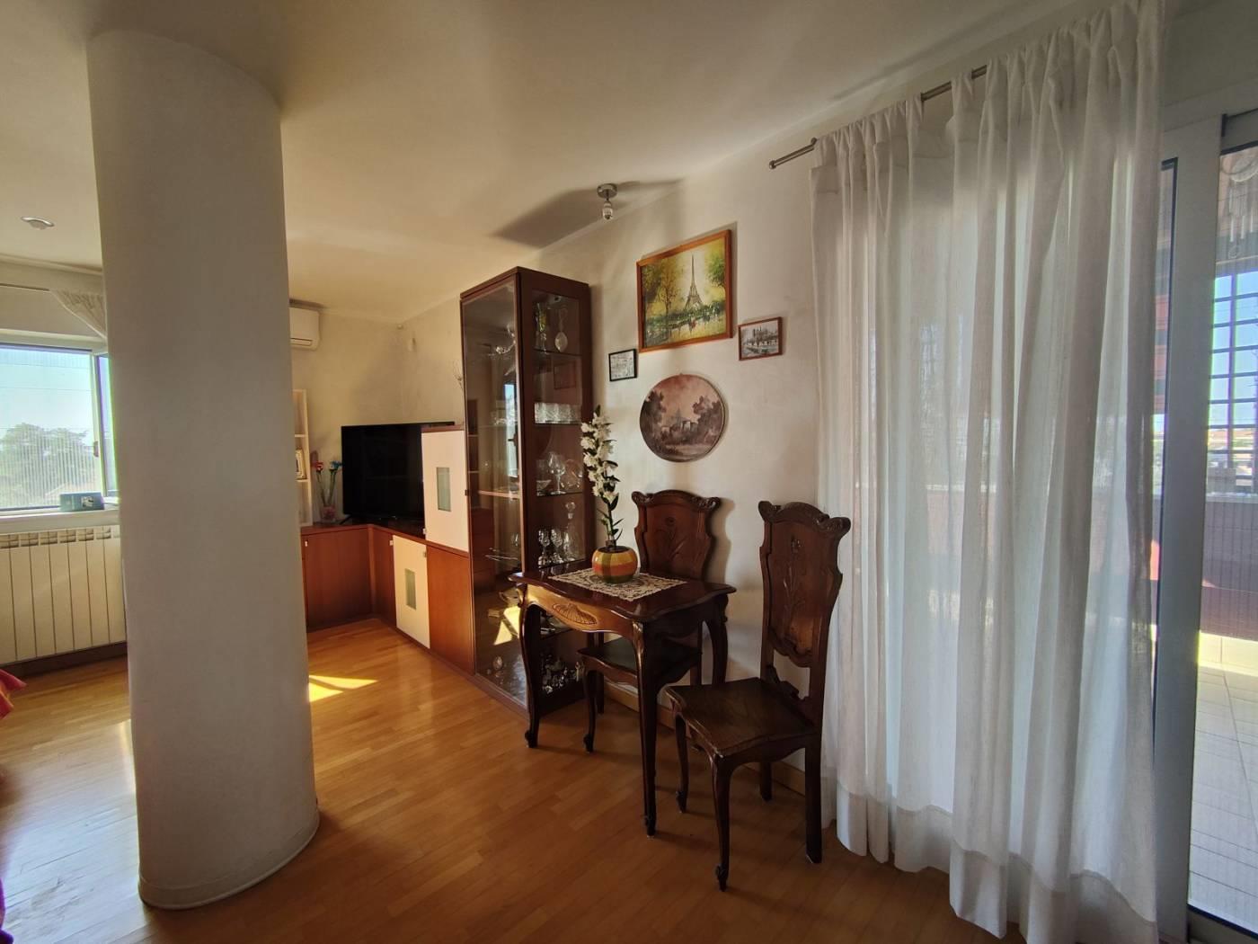 Appartamento (attico) in vendita di 95 mq ca. su 2 livelli sito a roma, posto al 3° piano, composto da: 1° livello: salone singolo, cucina semiabitabile (tavola per 2 persone), camera matrimoniale, bagno, balcone; 2° livello: camera matrimoniale. posto auto possibilità.