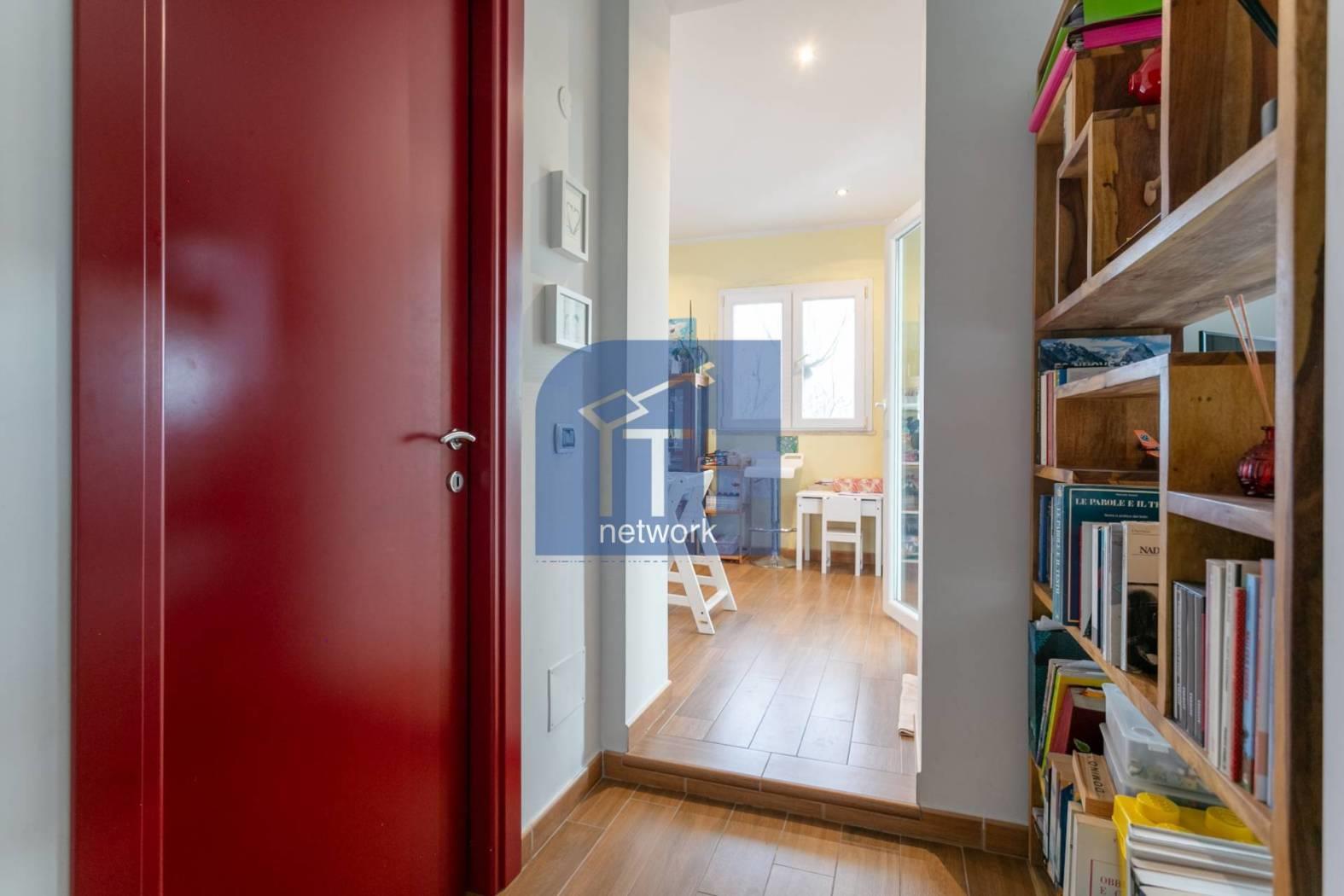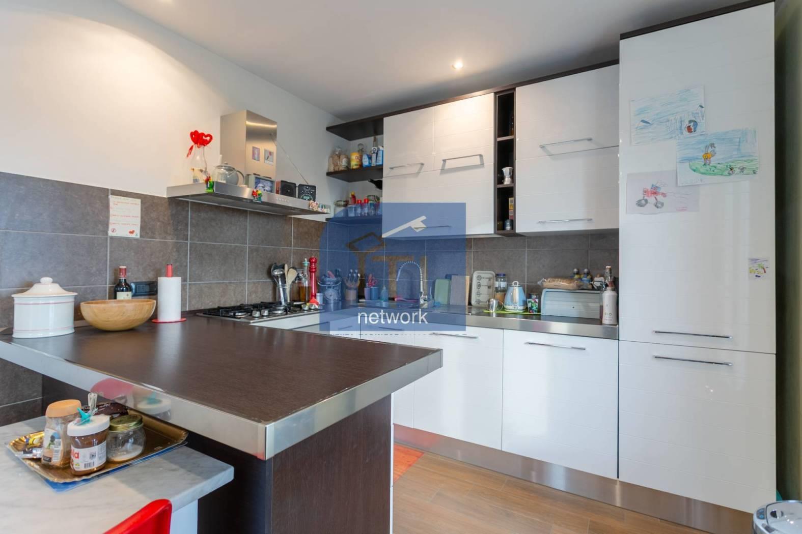 L'ingresso principale conduce ad un accogliente soggiorno, arredato con gusto offrendo un'atmosfera calda e confortevole, la cucina abitabile, moderna e completamente accessoriata è separata dalla zona giorno e dispone di un pratico e funzionale affaccio sull'ampio terrazzo .