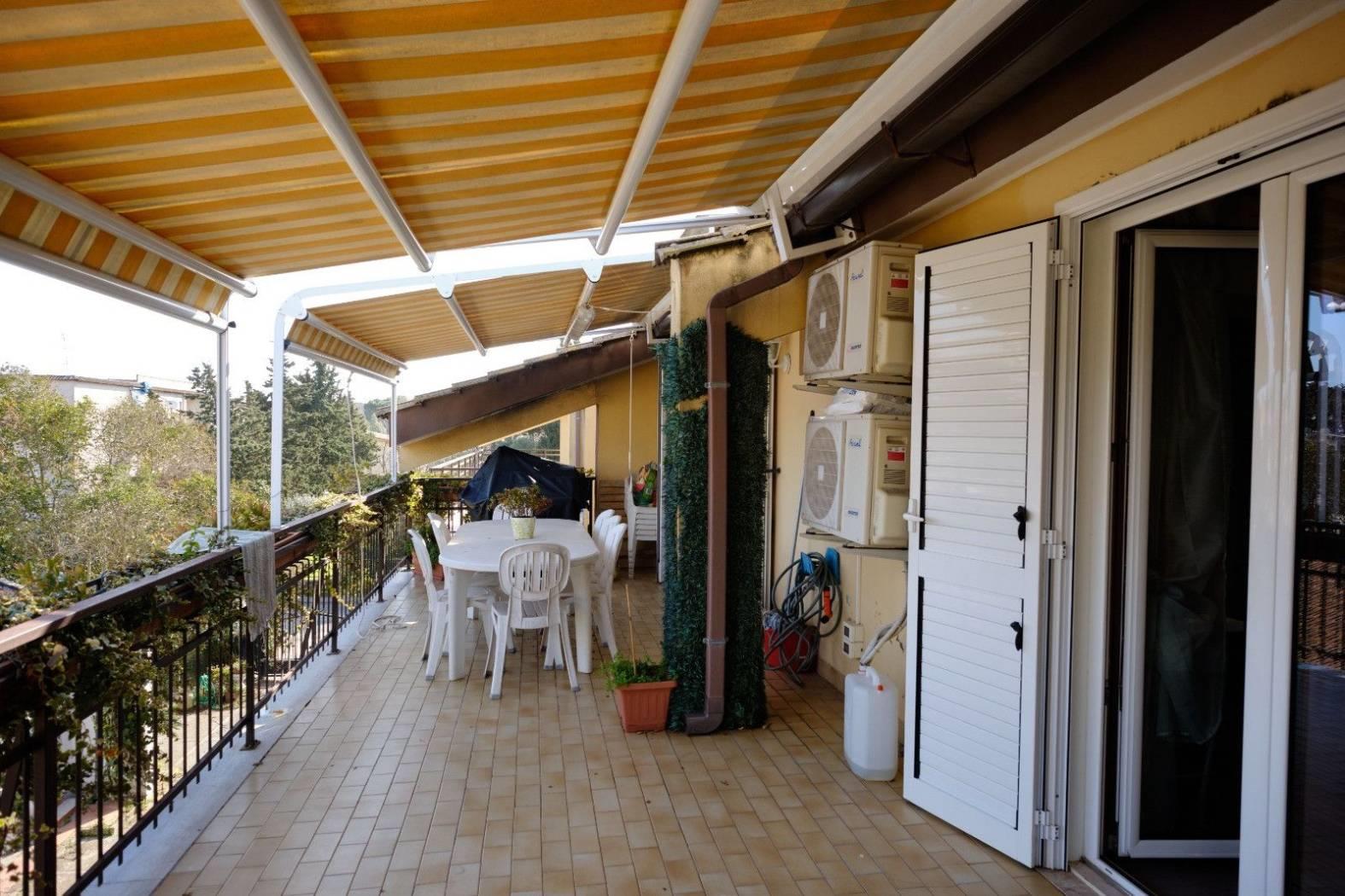 Anzio, zona Falasche, attico luminoso, completamente ristrutturato con ampi terrazzi. Si compone da: ampio salone con affaccio su uno spazioso terrazzo, cucinotto con affaccio al secondo terrazzo nel quale è situato anche un vano lavanderia coperto, due rifinitissime camere matrimoniali, doppi servizi finestrati. Completa la proprietà la possibilità di più posti auto in area condominiale e uno spazio verde condominiale con alberi da frutto.