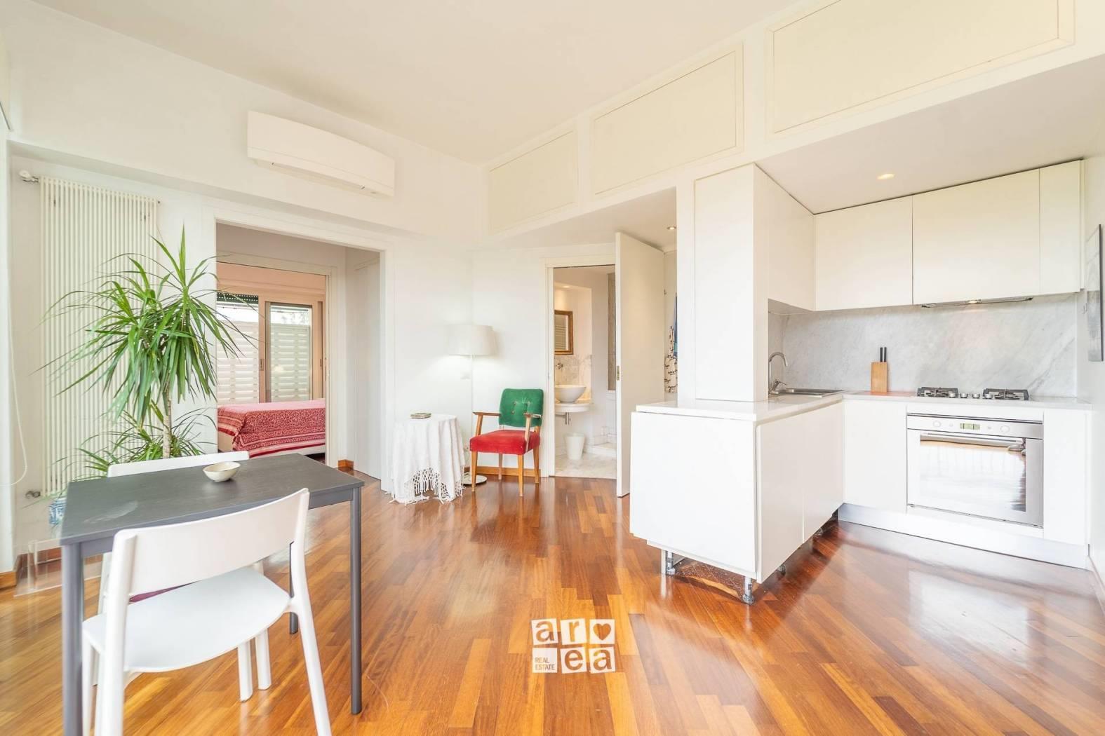 Un attico raffinato e versatile, immerso nel verde e con tutte le comodità a portata di mano.