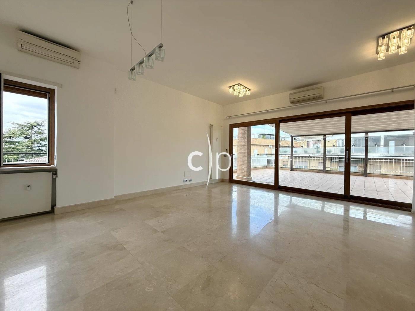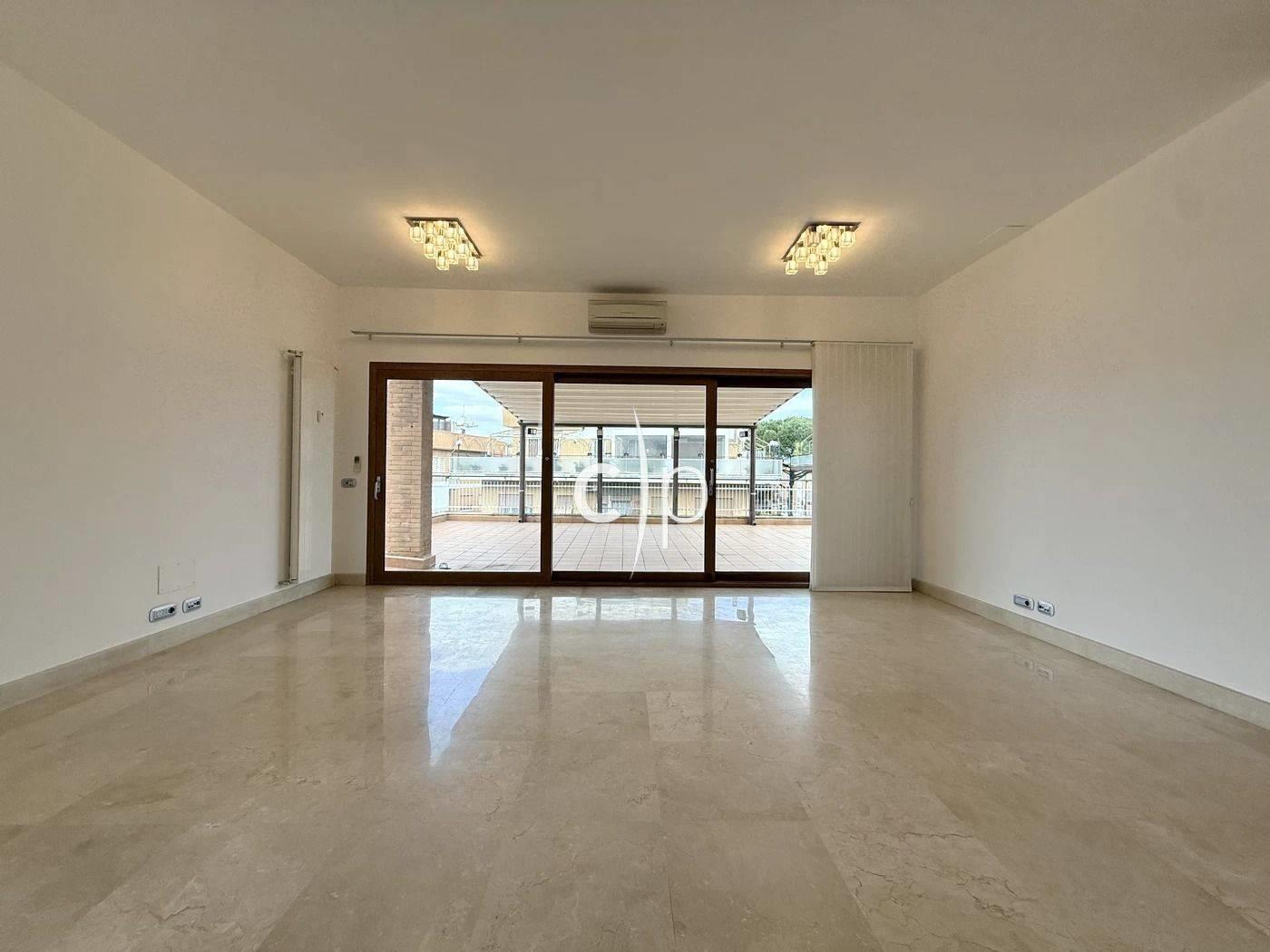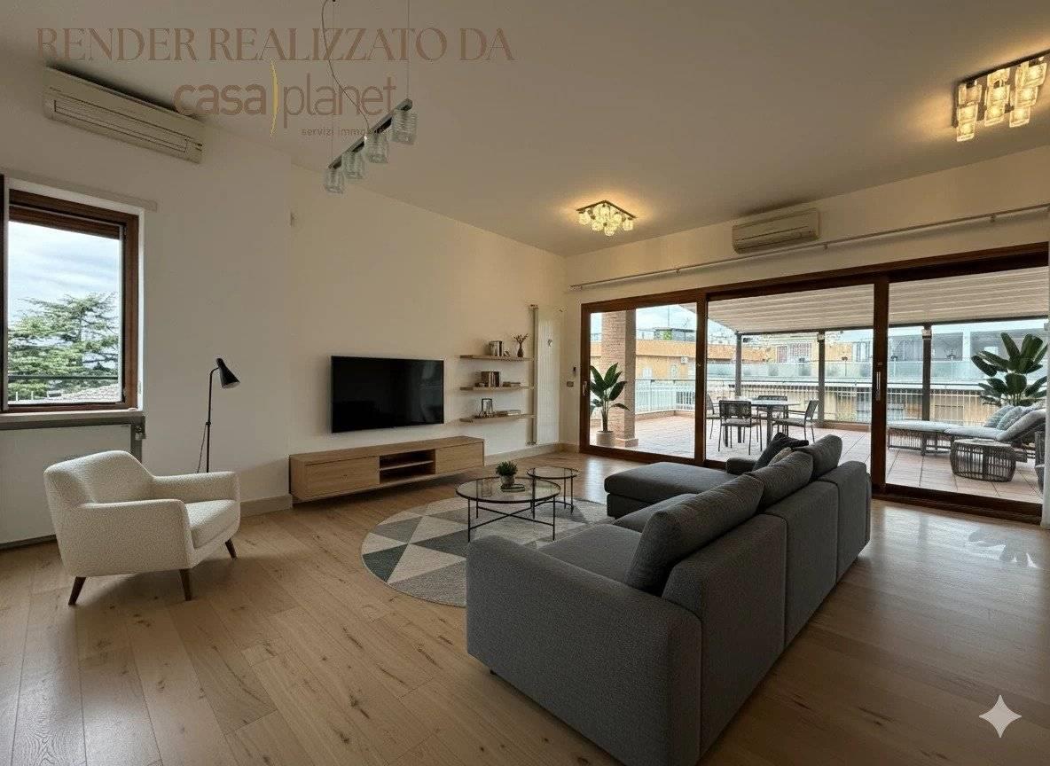 Terrazzo abitabile perimetrale di circa 120 mq con pergotenda motorizzata