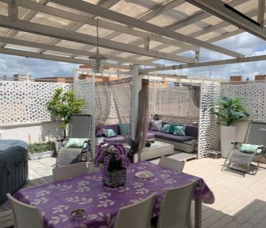 La porzione immobiliare è composta al piano attico da ingresso, un ampio e luminoso salone con camino ed affaccio sulla parte più vivibile del terrazzo, un'ampia sala pranzo, una cucina abitabile, un bagno e ripostiglio. Da una comoda scala si accede alla zona notte sita al quarto piano e composta da quattro camere matrimoniali, ognuna con accesso ai due balconi presenti nel piano stesso, tre bagni ed ampi ripostigli. Completa la proprietà un comodo box auto di circa 30 mq accessibile dall'interno del condominio direttamente con ascensore e dotato di serranda elettrica ed un posto auto scoperto nell'area antistante la palazzina. L'appartamento è dotato di portoncino blindato e videocitofono, i pavimenti sono in marmo in tutta la zona giorno, gli infissi sono in douglas con vetrocamera, il riscaldamento è autonomo e sono presenti impianto di aria condizionata e tende da sole. L' appartamento luminosissimo gode di una tripla esposizione al sole, est, sud, ovest ed è, vista l'ampia metratura e composizione, rimodulabile a seconda delle esigenze specifiche.