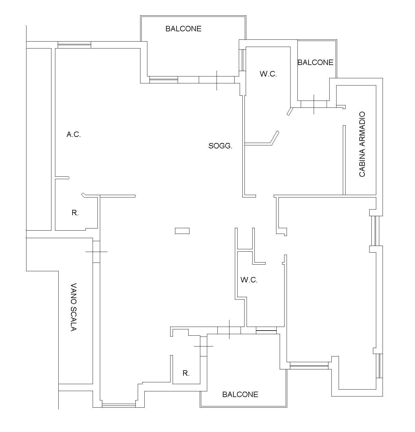 Bagno principale finestrato e disimpegno.