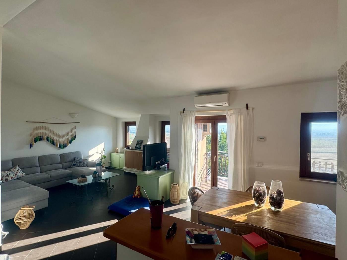 L'appartamento ha una superficie di circa mq 130 si trova al terzo ed ultimo piano ed é composto nella zona giorno da un'ampia cucina abitabile, un luminoso salone doppio con camino, zona pranzo e un terrazzo con vista panoramica mozzafiato.