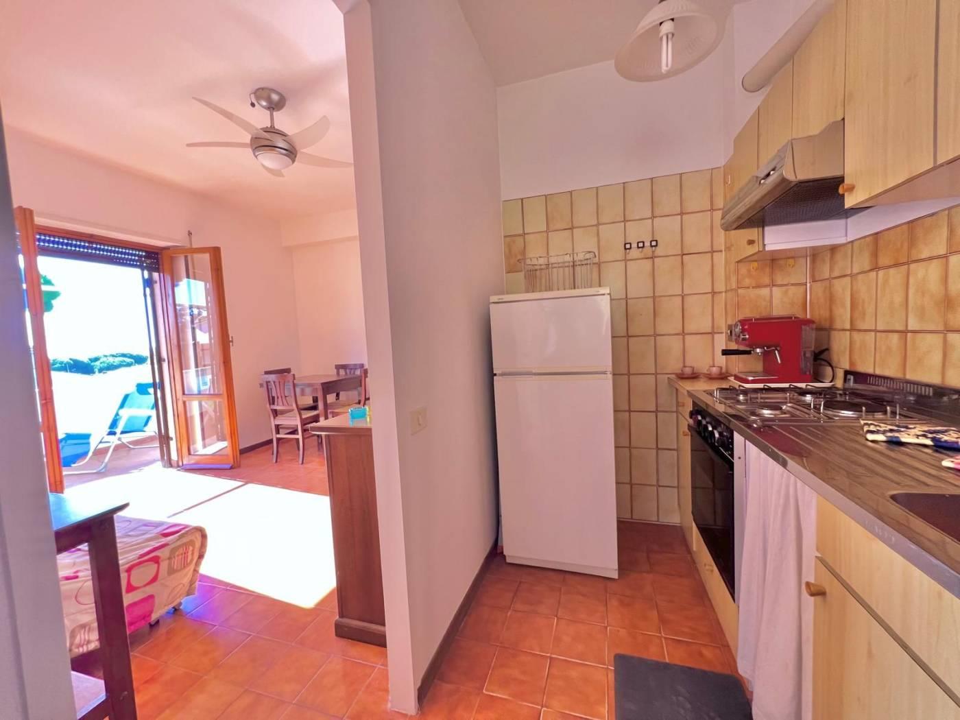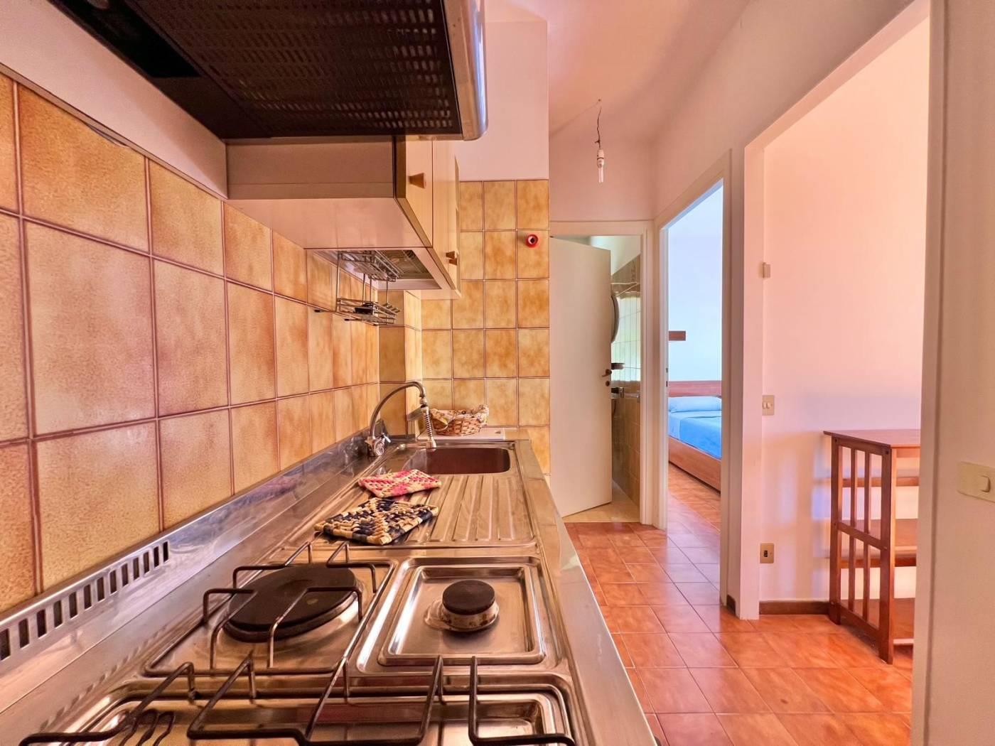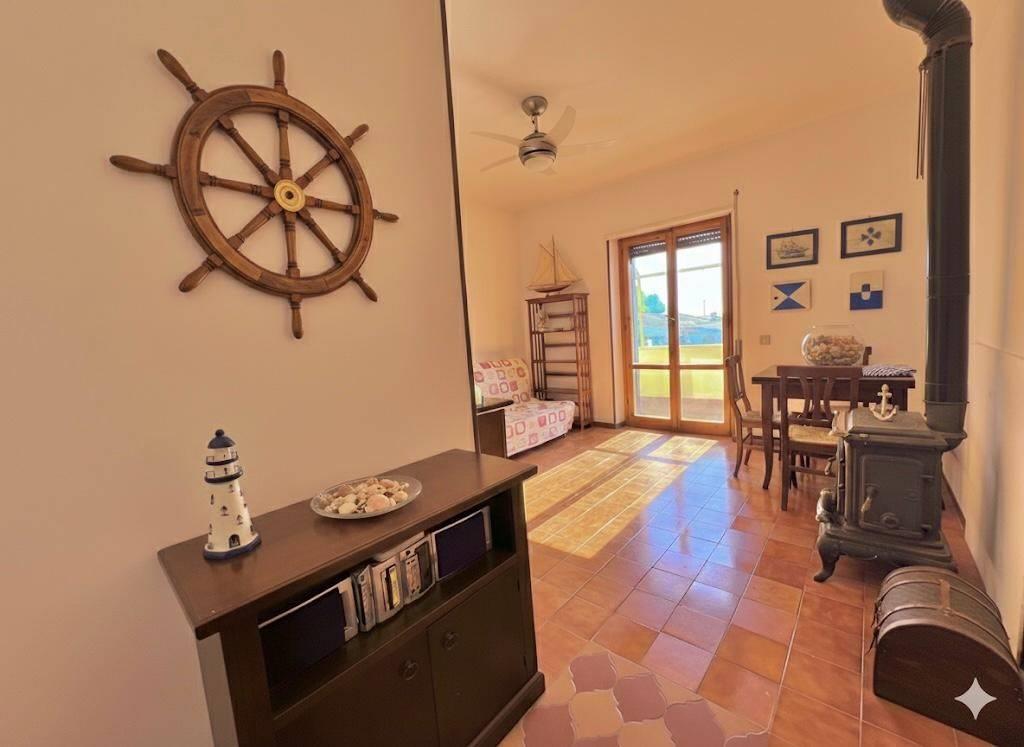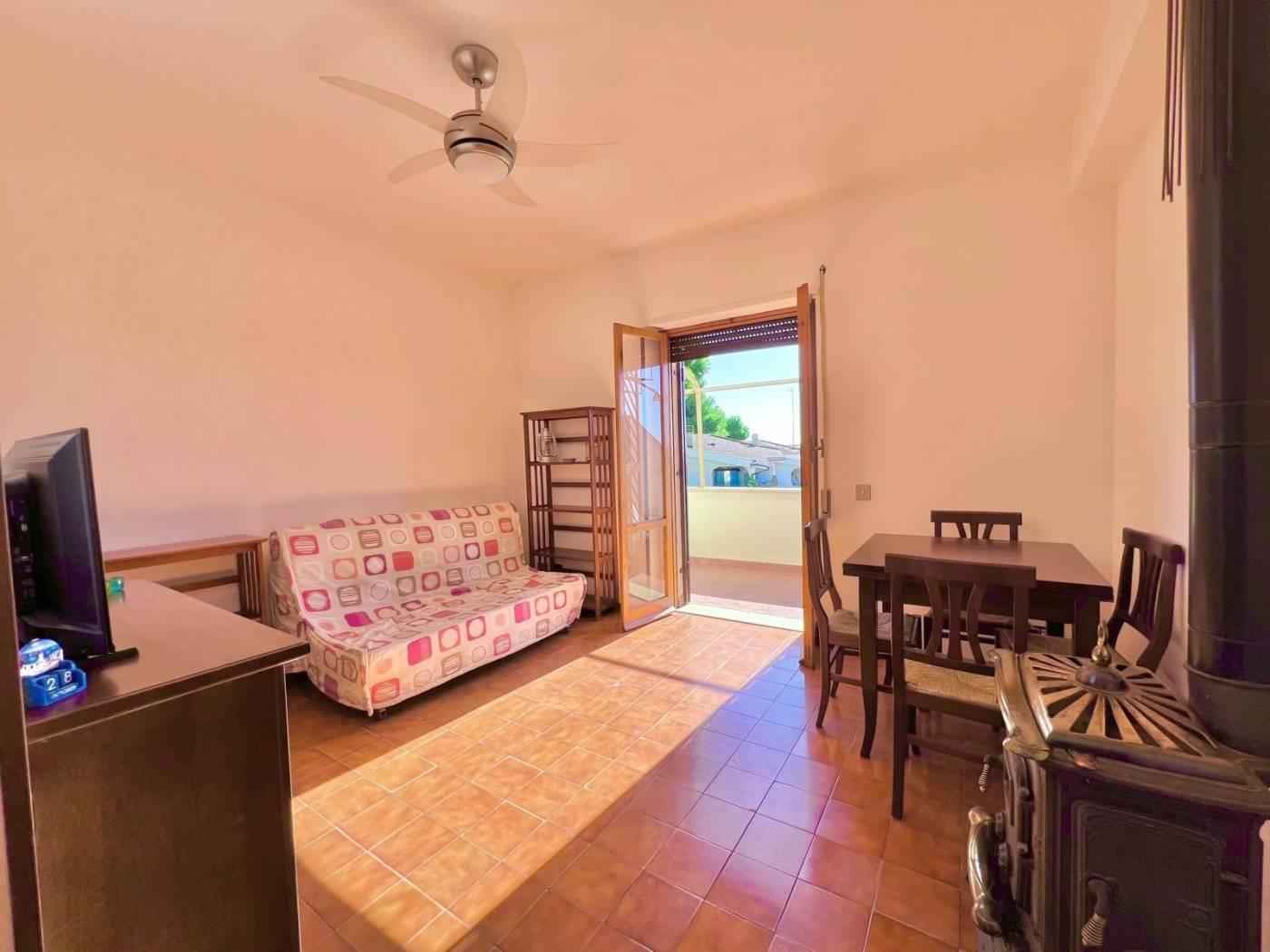 ingresso con un accogliente ampio salone impreziosito da una comoda Stufa in Ghisa che offre un riscaldamento a legna, caldo e accogliente durante tutto l'anno, angolo cottura pratico e funzionale, una luminosissima camera da letto matrimoniale, bagno con finestra, ampio ripostiglio con lavatrice integrata, balconata con ampie tende da sole.