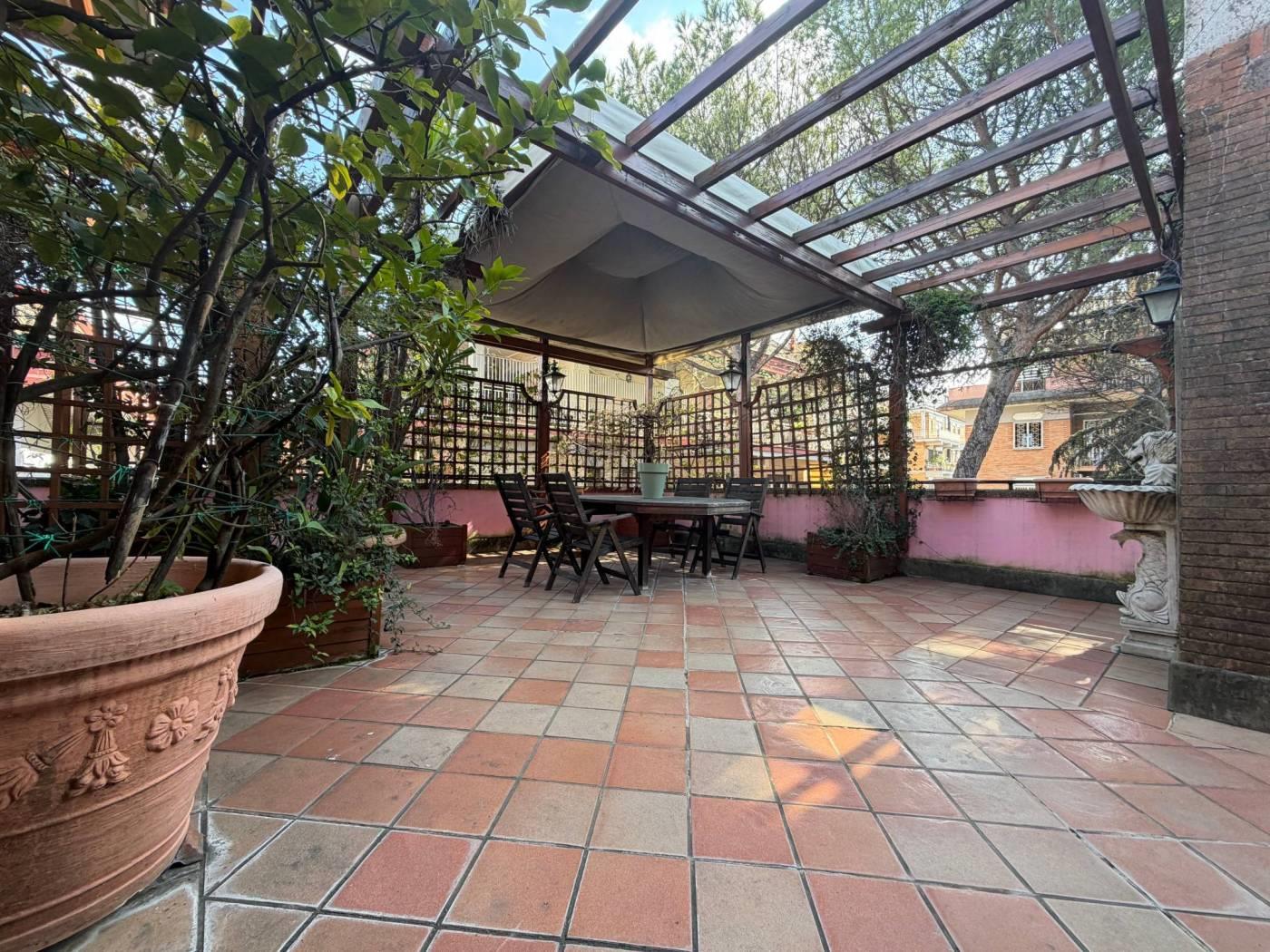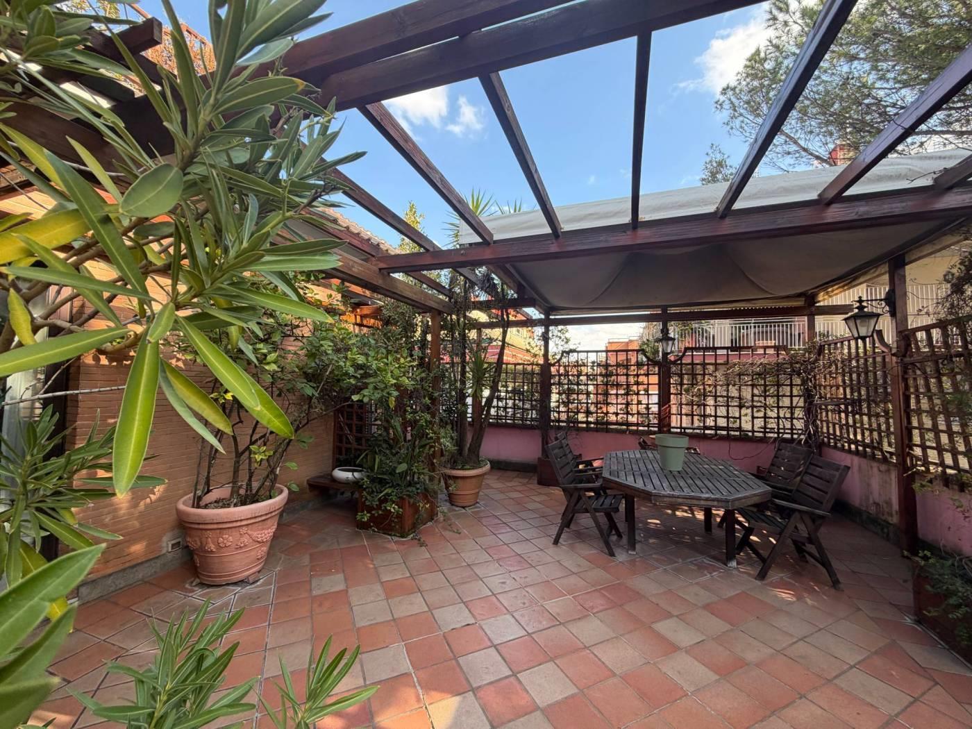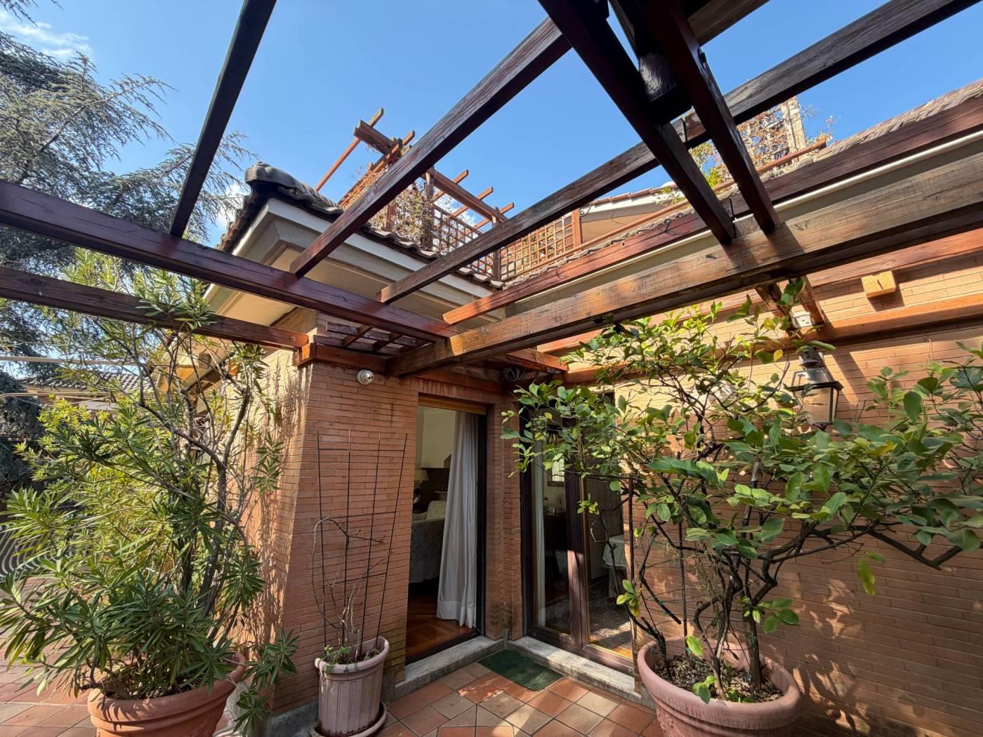 Elemento distintivo è il magnifico terrazzo perimetrale impreziosito con pergole, al quale si accede da tutti gli ambienti, perfetto per vivere gli spazi esterni in ogni momento della giornata.