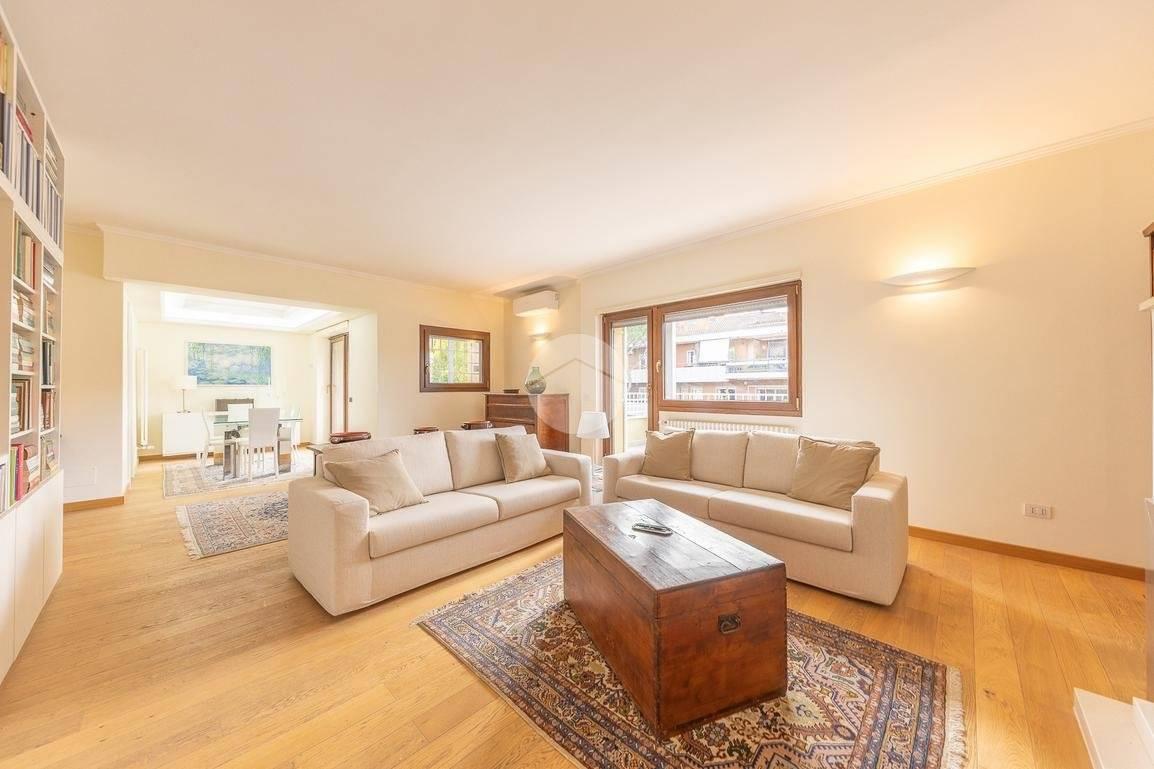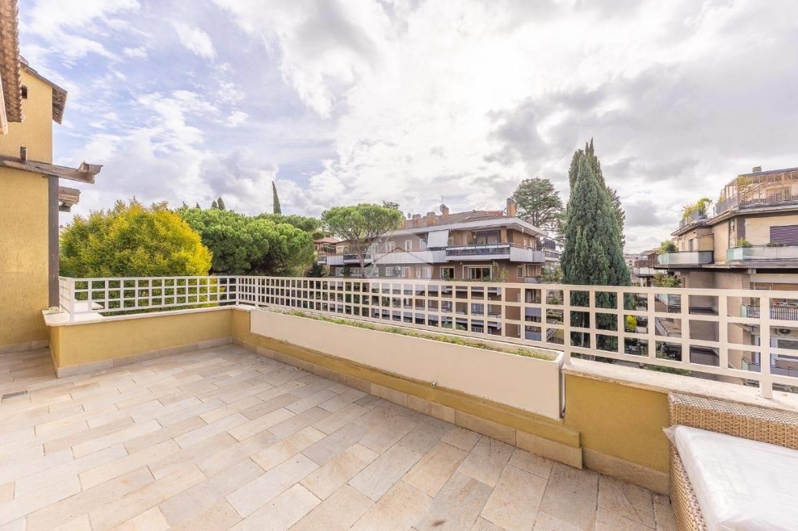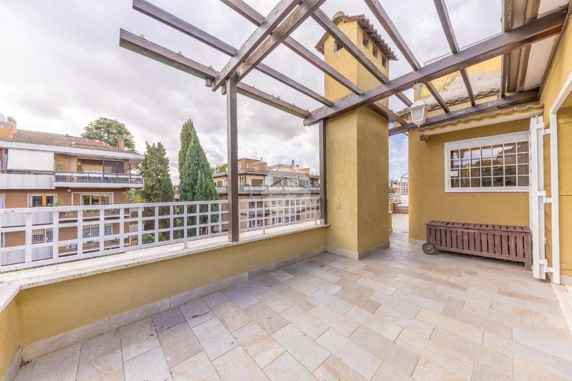 CORTINA D'AMPEZZO - In una delle zone più eleganti e tranquille di Roma Nord, precisamente su Viale Cortina d’Ampezzo, proponiamo in vendita un attico completamente ristrutturato, situato all’interno di una palazzina recentemente rinnovata grazie ai lavori di riqualificazione effettuati con Eco Bonus 110%. Lo stabile si presenta in condizioni impeccabili: sono stati realizzati interventi di efficientamento energetico come il cappotto termico, la nuova caldaia a condensazione, oltre all’installazione di infissi nuovi, che garantiscono un elevato comfort abitativo. L’appartamento si distingue per la sua luminosità e per gli spazi ampi e ben distribuiti. L’ingresso si apre su un salone doppio con camino che, insieme alla sala da pranzo, crea una zona giorno accogliente e perfetta. La cucina, separata e funzionale, è dotata di tutto lo spazio necessario per chi ama cucinare e vivere la casa. La zona notte è composta da tre camere da letto e due bagni, garantendo spazio alle famiglie numerose. Tutti gli ambienti si affacciano su una splendida terrazza perimetrale, ideale per godersi momenti di relax all’aperto e organizzare cene estive ammirando il panorama circostante. A completare la proprietà troviamo una cantina perfetta per rispondere a ogni esigenza di spazio. Possibilità di acquisto di un box auto di circa 32 mq ad un prezzo aggiuntivo di € 95.000. L’attico rappresenta una soluzione ideale per chi desidera vivere in un contesto signorile, circondato dal verde e al tempo stesso vicino a tutti i principali servizi e collegamenti. Un’abitazione pronta da vivere, elegante e confortevole, nel cuore di una delle aree più ambite di Roma.