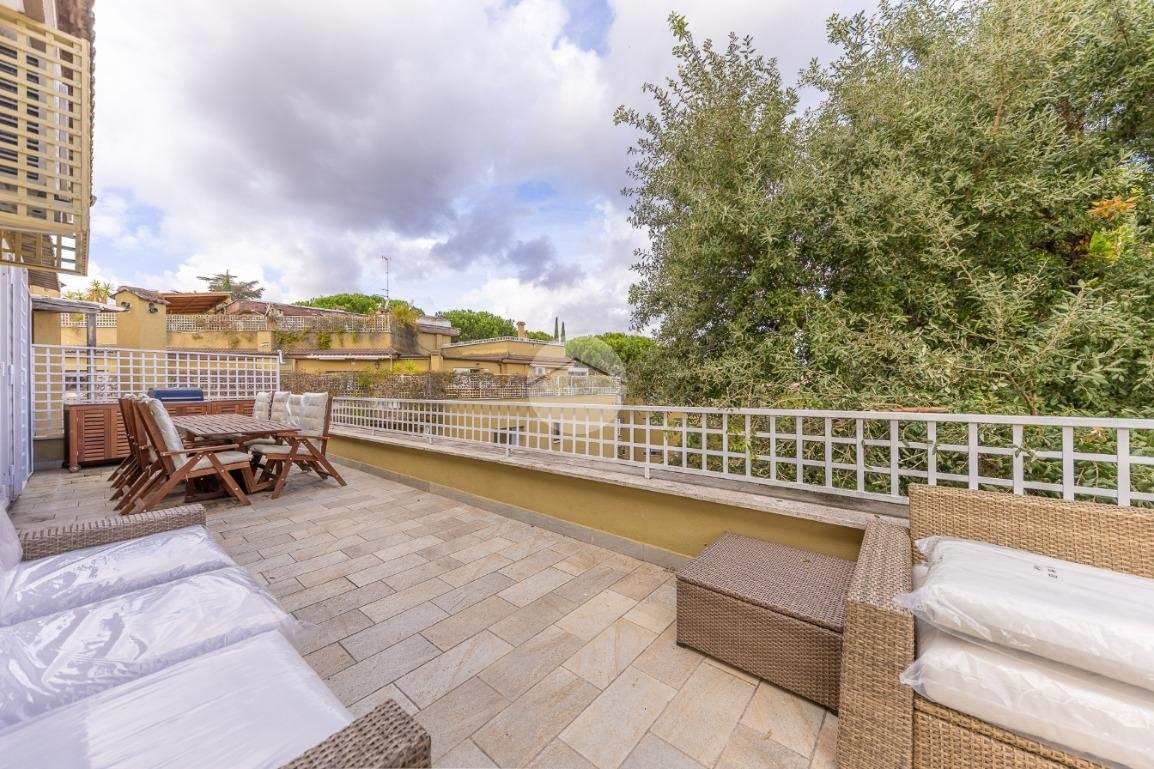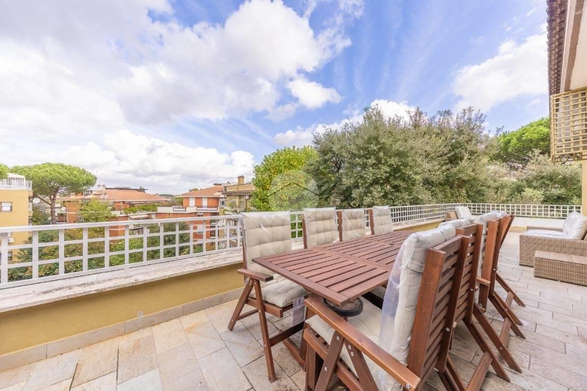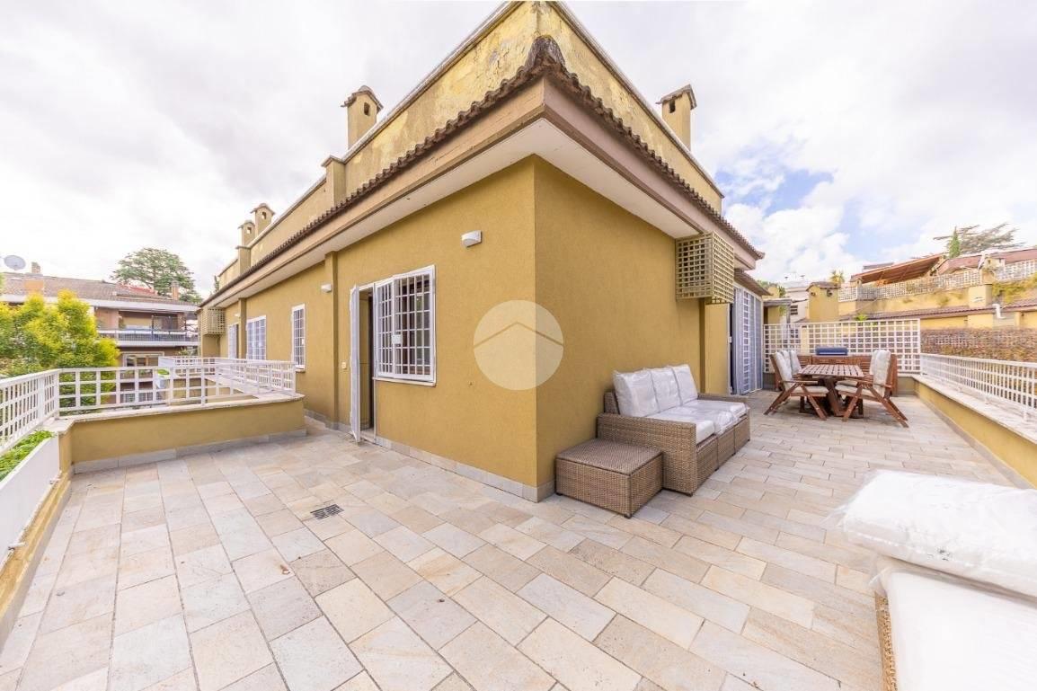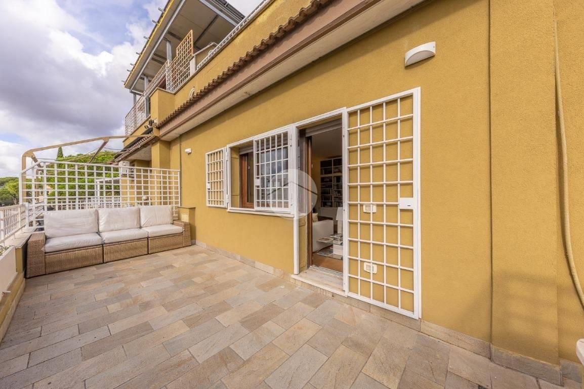 CORTINA D'AMPEZZO - In una delle zone più eleganti e tranquille di Roma Nord, precisamente su Viale Cortina d’Ampezzo, proponiamo in vendita un attico completamente ristrutturato, situato all’interno di una palazzina recentemente rinnovata grazie ai lavori di riqualificazione effettuati con Eco Bonus 110%. Lo stabile si presenta in condizioni impeccabili: sono stati realizzati interventi di efficientamento energetico come il cappotto termico, la nuova caldaia a condensazione, oltre all’installazione di infissi nuovi, che garantiscono un elevato comfort abitativo. L’appartamento si distingue per la sua luminosità e per gli spazi ampi e ben distribuiti. L’ingresso si apre su un salone doppio con camino che, insieme alla sala da pranzo, crea una zona giorno accogliente e perfetta. La cucina, separata e funzionale, è dotata di tutto lo spazio necessario per chi ama cucinare e vivere la casa. La zona notte è composta da tre camere da letto e due bagni, garantendo spazio alle famiglie numerose. Tutti gli ambienti si affacciano su una splendida terrazza perimetrale, ideale per godersi momenti di relax all’aperto e organizzare cene estive ammirando il panorama circostante. A completare la proprietà troviamo una cantina perfetta per rispondere a ogni esigenza di spazio. Possibilità di acquisto di un box auto di circa 32 mq ad un prezzo aggiuntivo di € 95.000. L’attico rappresenta una soluzione ideale per chi desidera vivere in un contesto signorile, circondato dal verde e al tempo stesso vicino a tutti i principali servizi e collegamenti. Un’abitazione pronta da vivere, elegante e confortevole, nel cuore di una delle aree più ambite di Roma.