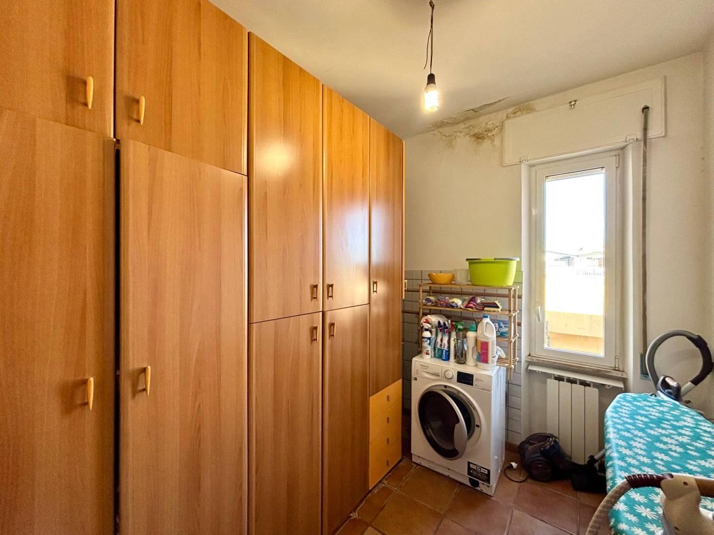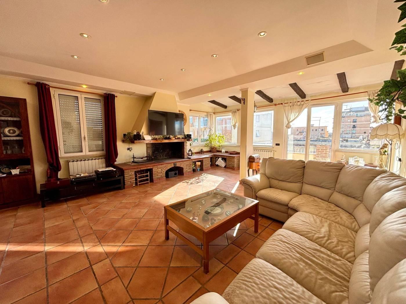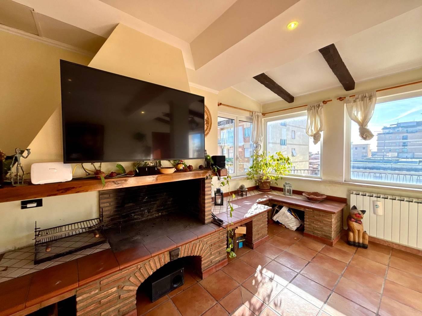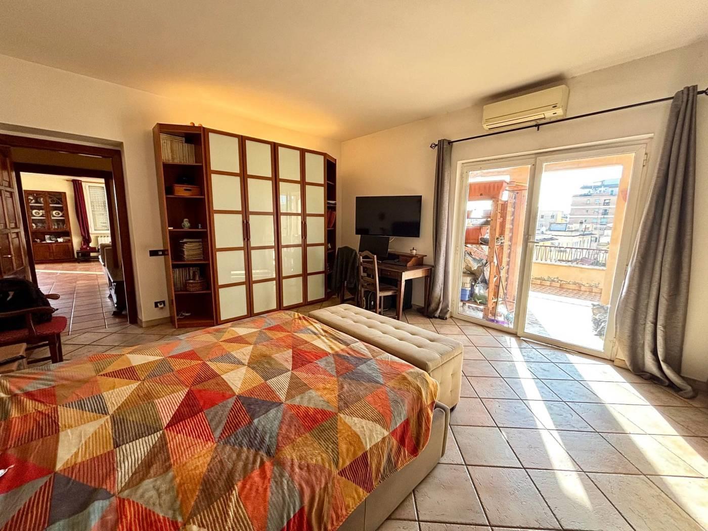 L'immobile è composto al suo interno da uno spazioso e accogliente salone con camino che si affaccia su una cucina a vista e una dispensa. La zona giorno è caratterizzata da pavimenti in cotto toscano e da un’ottima luminosità garantita dall’esposizione favorevole e da una parete vetrata che dà accesso a un ampio terrazzo. La zona notte, separata dalla zona giorno, è composta da un'ampia camera matrimoniale, una cameretta, uno studio (attualmente utilizzato come cabina armadio e zona lavanderia), oltre a un servizio igienico. Completano la soluzione oltre che un ampio terrazzo, anche un androne privato sul pianerottolo con annesso ripostiglio di pertinenza. L'immobile dispone inoltre di infissi in doppio vetro, impianti a norma, condizionatore e porta blindata in massello di noce.
