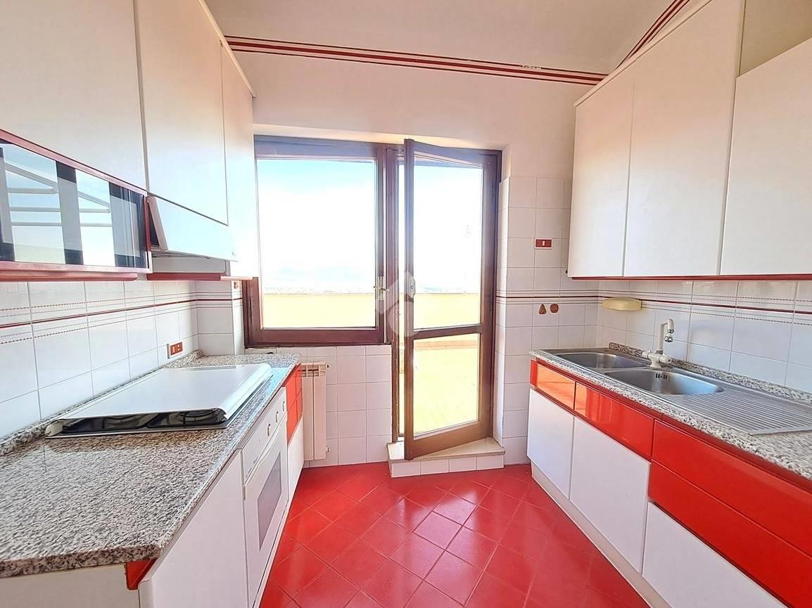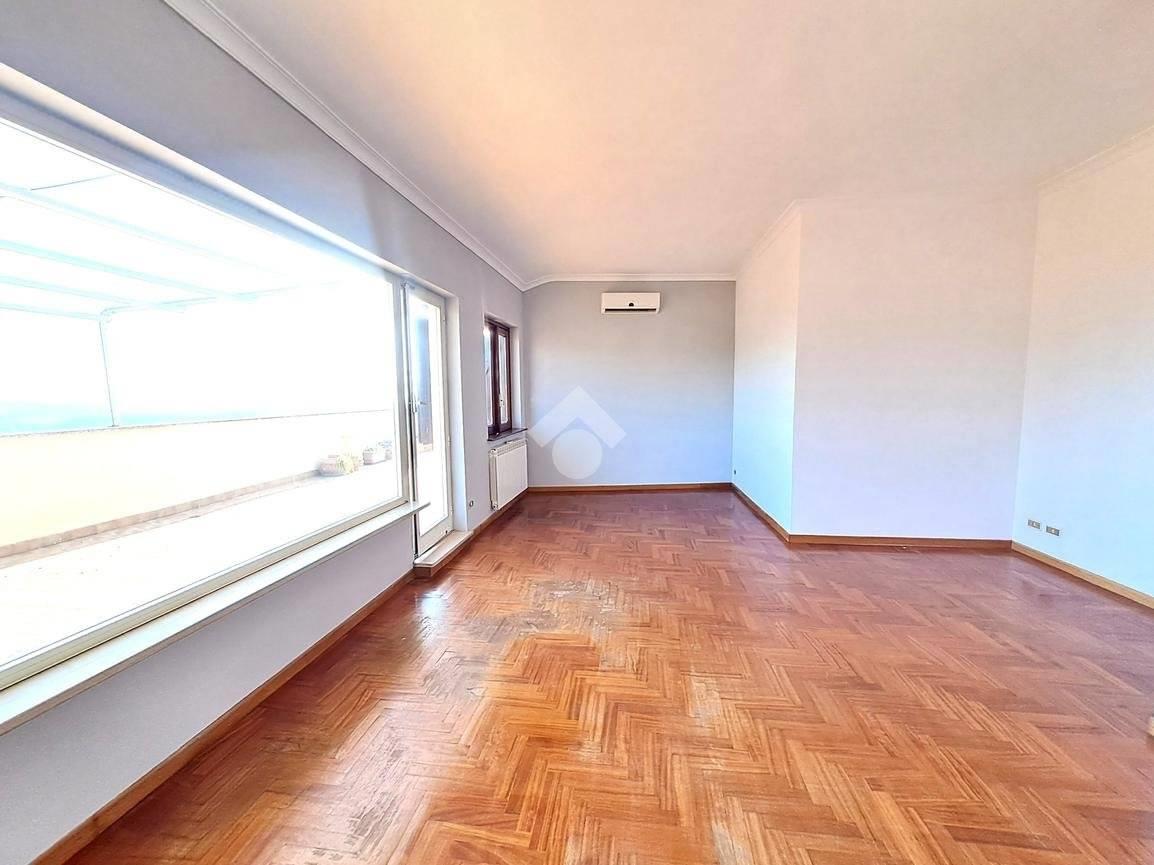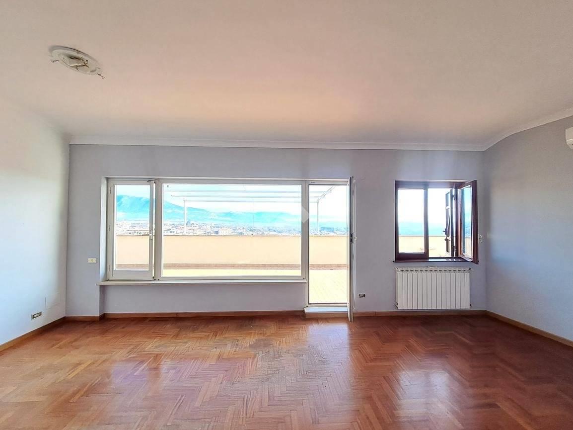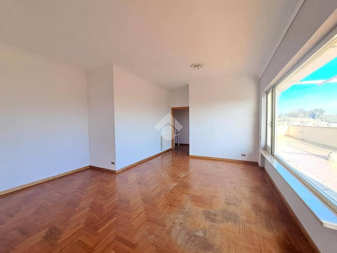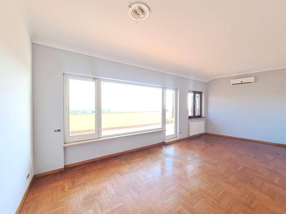 L’appartamento è un trilocale caratterizzato da ambienti ampi e molto luminosi, grazie alle uscite dirette sul terrazzo da ogni stanza, che regalano una piacevole vista panoramica sul Monte Soratte.