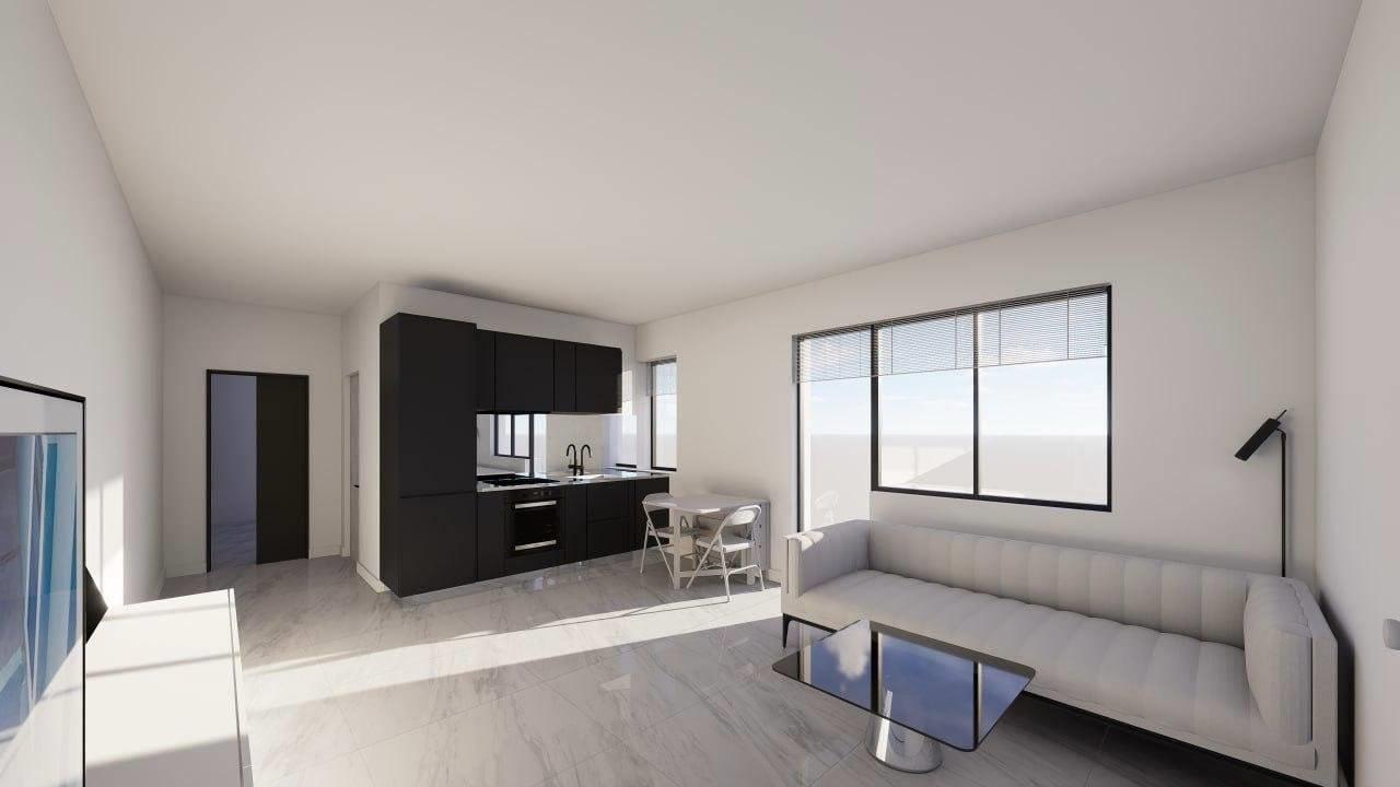 luminoso salone con angolo cottura,