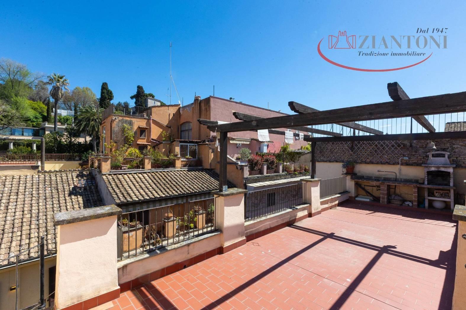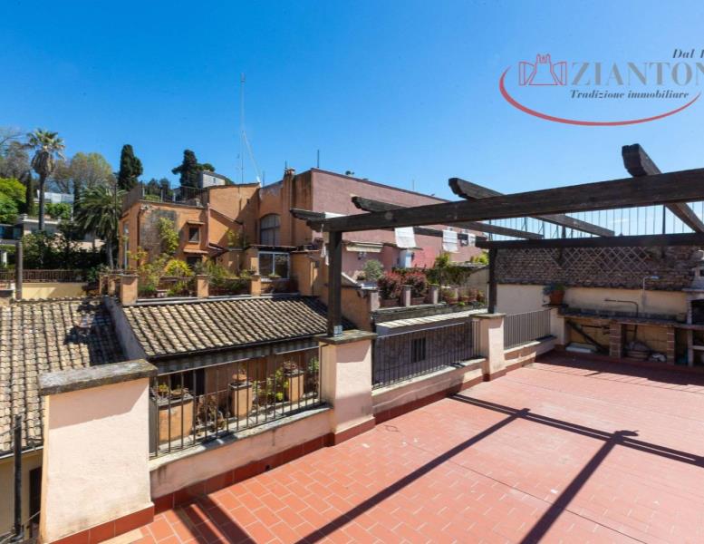 Il balcone accessibile dal soggiorno offre una vista panoramica, mentre una scala esterna conduce alla terrazza sovrastante di 100 m², dotata di barbecue in muratura, ideale per le serate estive dove potrete godervi momenti indimenticabili all'aperto sullo skyline romano.