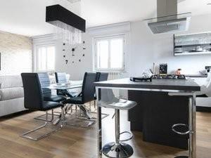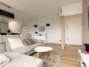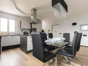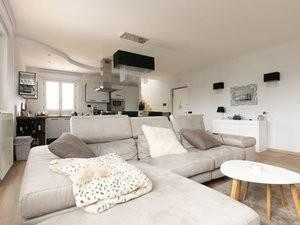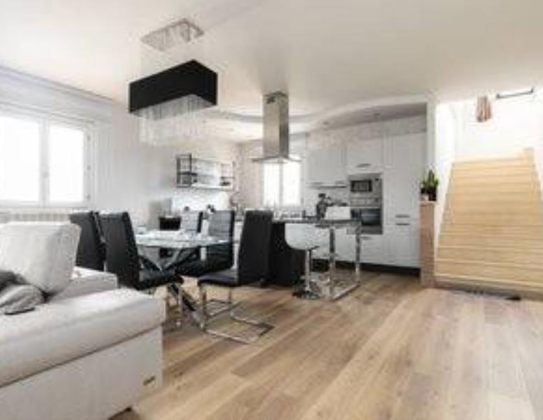 Attico su due piani, 2 camere da letto molto spaziose, 2 bagni, soggiorno con cucina a vista e balconcino.