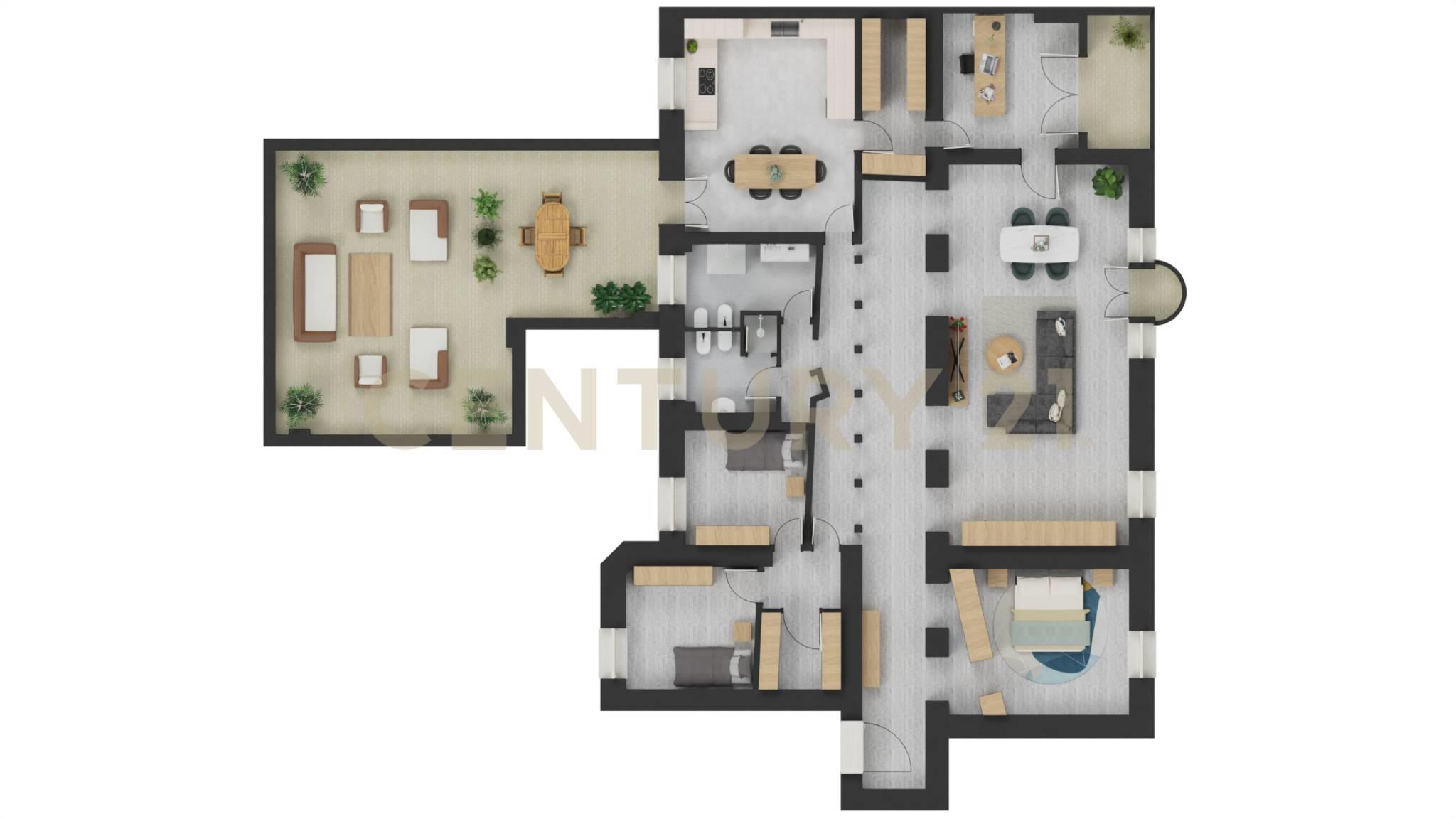 Completano la proprietà numerosi armadi di falegnameria su misura, infissi di ultima generazione, aria condizionata e riscaldamento centralizzato. Grande cantina di pertinenza .
