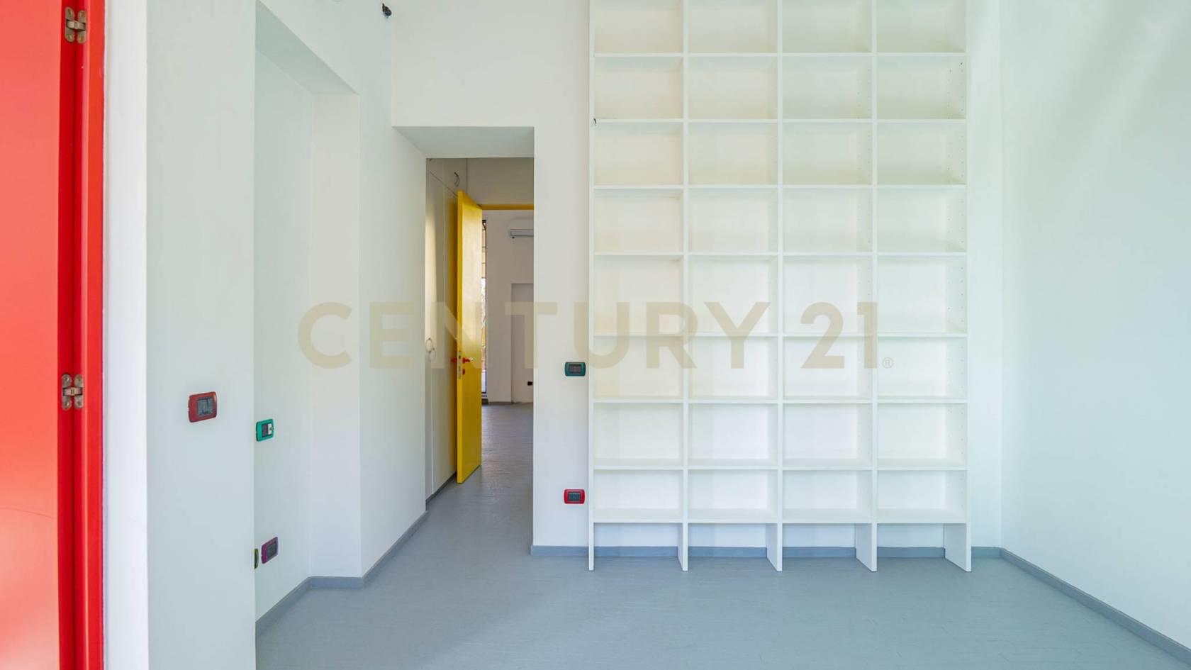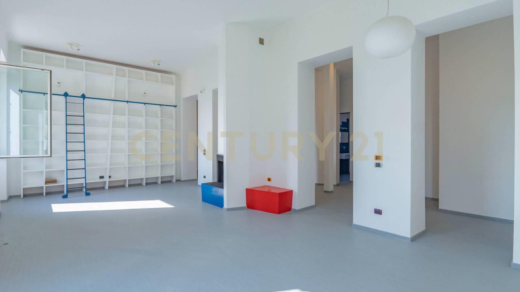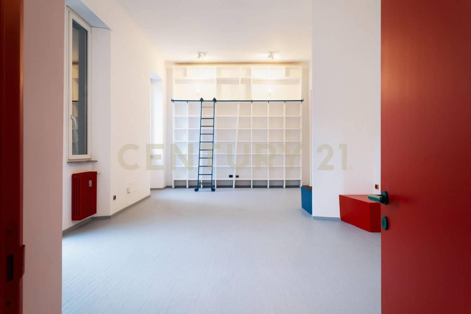L’ingresso, spazioso e scenografico, introduce in un luminosissimo salone triplo, impreziosito da quattro grandi finestre, camino e ampia libreria su misura. Dal salone si accede a uno studio con balcone, perfetto come zona lavoro o lettura.