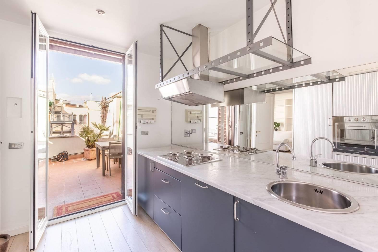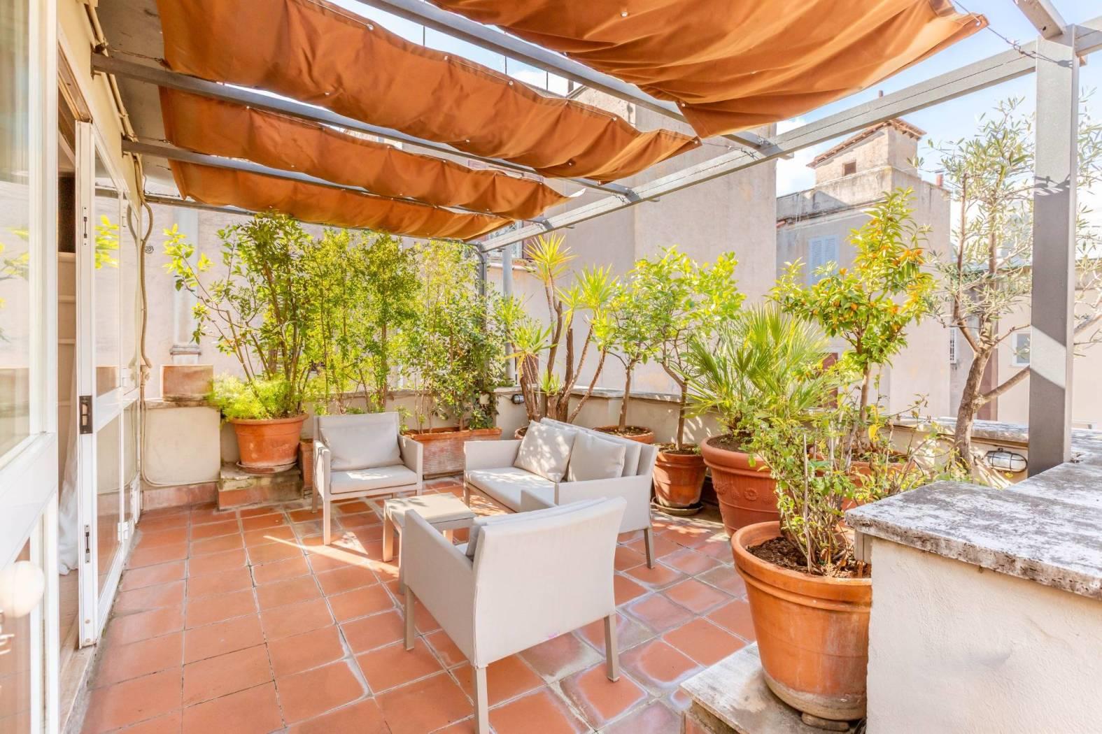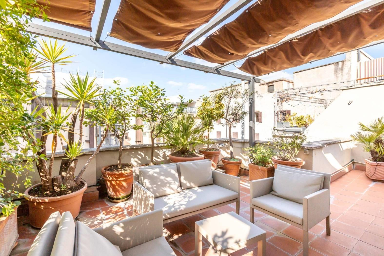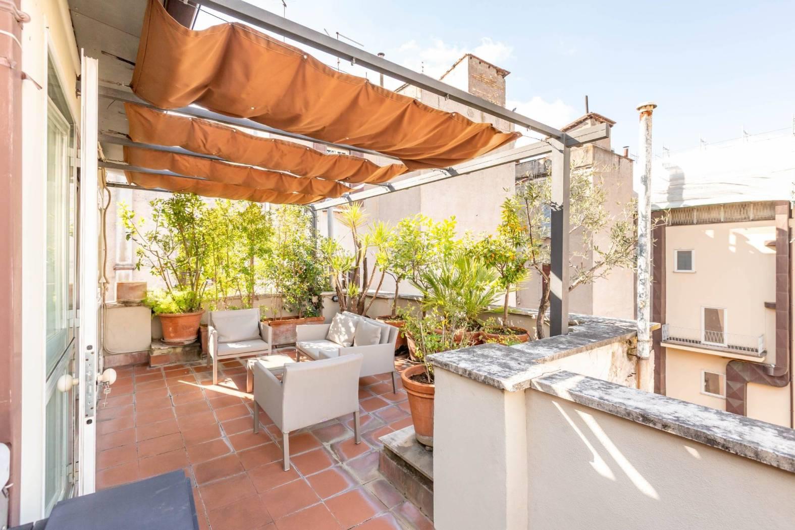 Abbiamo il piacere di proporre in locazione questo prestigioso attico con terrazza a livello, ristrutturato e completamente arredato. L'appartamento, posto al quinto e ultimo piano di un elegante palazzo d'epoca munito di ascensore, si presenta luminoso e silenzioso. La superficie di circa 140 mq risulta perfettamente distribuita: un ampio ingresso ci immette nel cuore della casa, un salone doppio che affaccia sul graziosissimo terrazzo caratterizzato da tanta privacy, una splendida cucina di design, che ha anch'essa accesso al terrazzo, nello specifico alla zona BBQ. A completare la zona giorno, un comodo bagno finestrato e uno studio di passaggio che ci conduce alla zona notte, dove troviamo due ampie camere da letto, una delle quali impreziosita da cabina armadio e bagno en suite. Questo immobile di grande rappresentanza, caratterizzato da una fusione di elementi moderni e classici, riesce a regalare tanta pace e serenità pur trovandosi nel cuore di Roma e in un punto strategicamente collegato. Si richiedono garanzie bancarie. No uso ricettivo.
