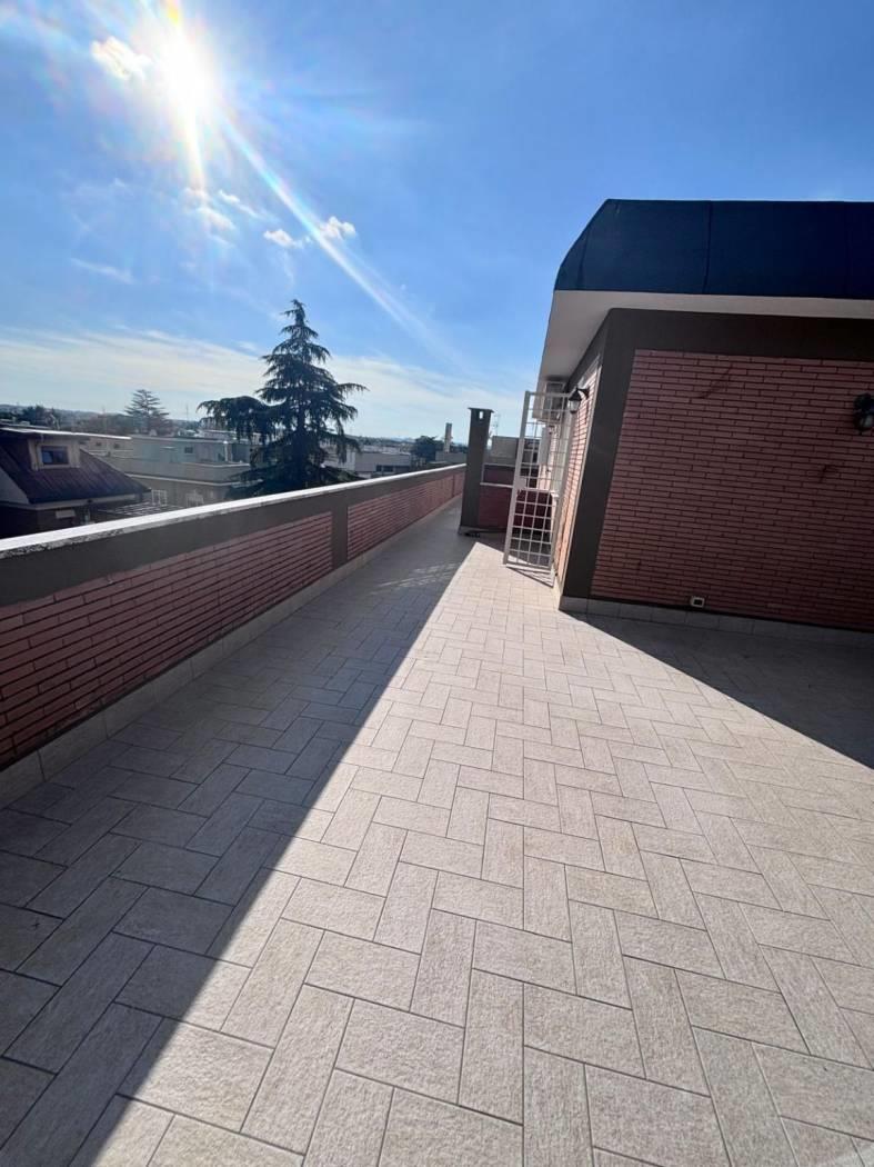 Talenti, via Dino Frescobaldi, nelle immediate adiacenze di via Luigi Capuana e via Ugo Ojetti, in uno stabile servito da ascensore proponiamo la locazione di un attico sito al quinto piano. L’immobile è composto da ingresso, soggiorno, due camere, bagno ed un terrazzo perimetrale di circa 100 mq. L’appartamento viene locato parzialmente arredato ed è dotato di porta blindata, pavimenti in parquet, condizionatori e grate di sicurezza.