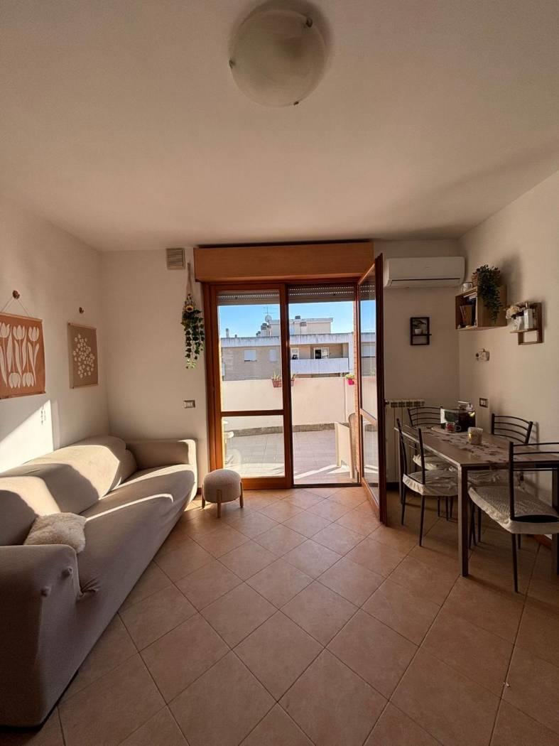 Costruzione con materiali di alta qualità firmata Santarelli nel 2010, in condominio signorile in cortina e con aree verdi, parquet noce, eccellenti rifiniture come nuovo, composto da Ingresso, disimpegno, soggiorno con angolo cottura, camera matrimoniale, ampio servizio con vasca e grande finestra, terrazzo accessibile da tutti gli ambienti, possibilità cameretta.