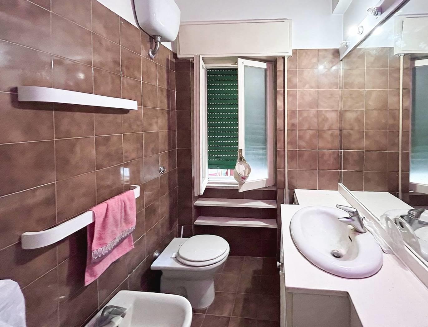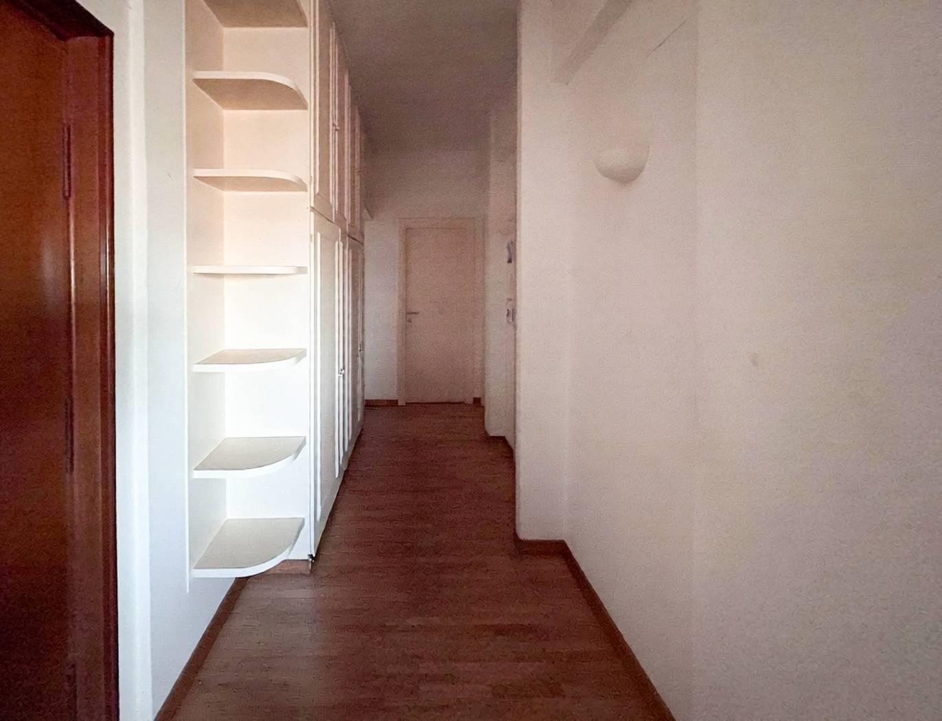 Dal salone si accende a un splendido terrazzo di 60 mq. con esposizione sud -est -nord e visuale aperta. L’appartamento è dotato di condizionatori e riscaldamento centralizzato con valvole a consumo. Presenti comodi armadi a muro zona corridoio e camera singola.