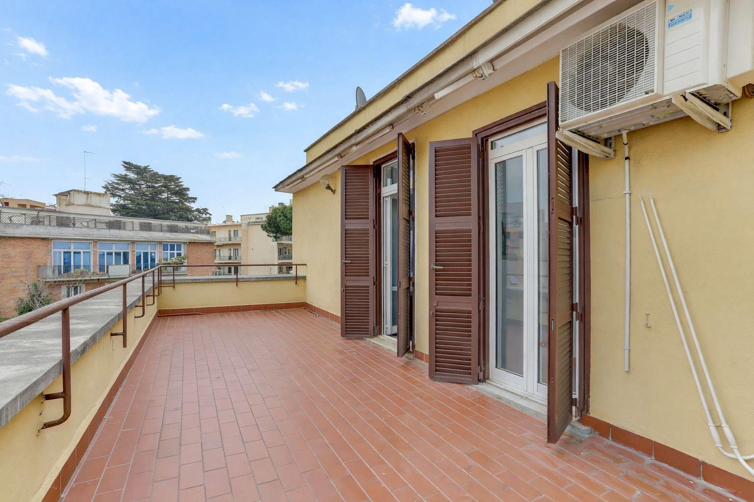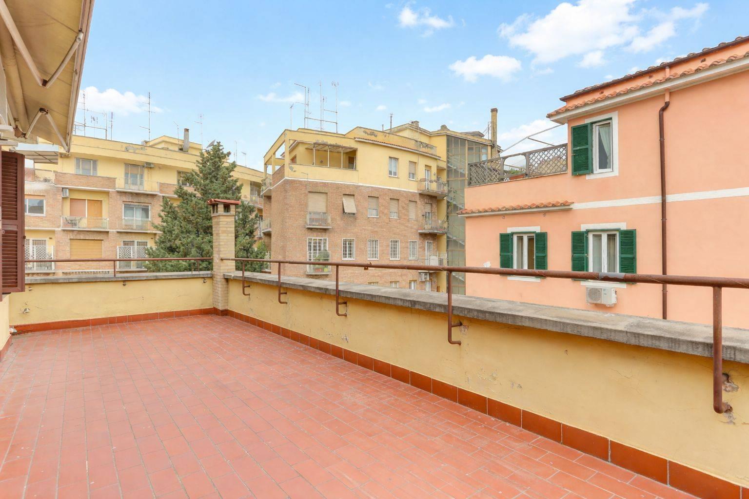 Nel cuore del quartiere Balduina, e precisamente in Viale delle Medaglie d’Oro, proponiamo in vendita un luminoso attico di circa 60 mq interni con splendido terrazzo di circa 32 mq. L’appartamento è così distribuito: ingresso, soggiorno, cucina, servizio, camera da letto e ampio terrazzo vivibile, ideale per momenti di relax, pranzi e cene all’aperto. L’immobile presenta pavimentazione in cotto, che conferisce agli ambienti calore e carattere. Si trova all’interno di una palazzina in tinta e cortina, in buone condizioni manutentive. Libero dal 31 luglio.