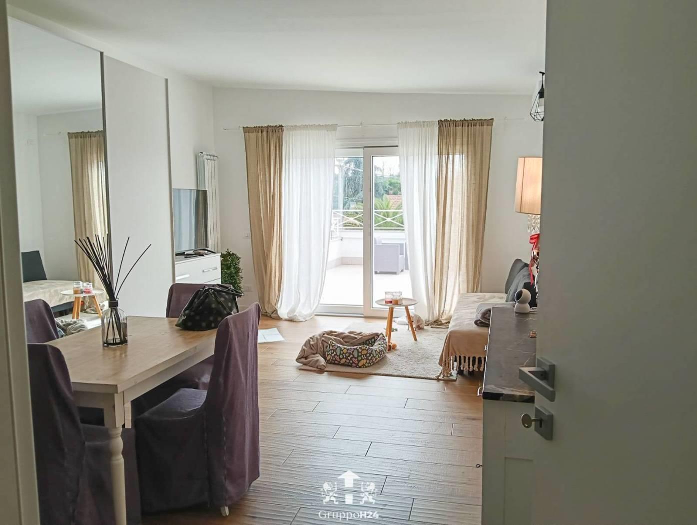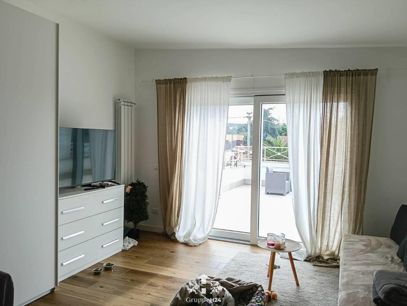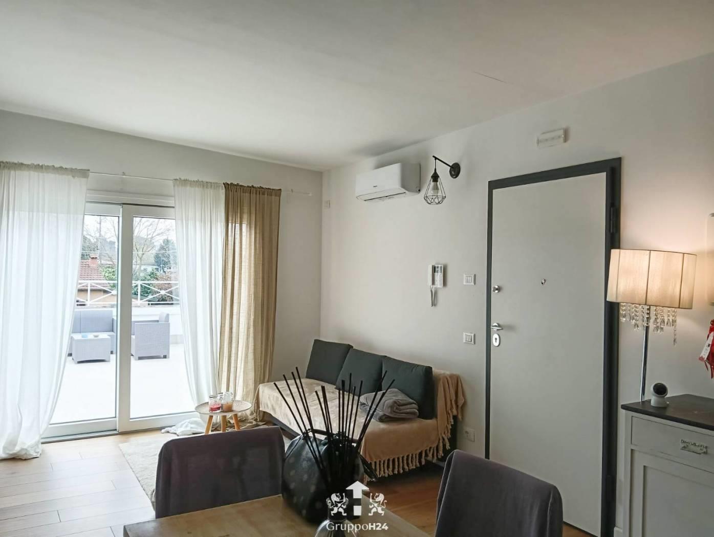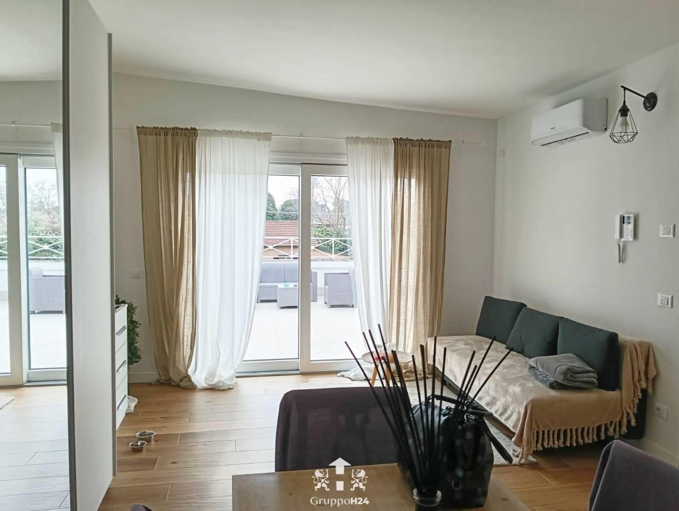 All’interno di una villa, GruppoH24 propone in affitto attico al primo piano con ingresso indipendente, in contesto tranquillo e riservato. L’immobile è composto da soggiorno con angolo cottura, camera da letto con cabina armadio e balconcino, bagno e splendido terrazzo di circa 50 mq, ideale per momenti di relax all’aperto. L’appartamento viene affittato completamente arredato come da foto ed è dotato di diversi comfort, tra cui videocitofono, aria condizionata e riscaldamento autonomo. Nessuna spesa condominiale. Disponibile SOLO PER LAVORATORI NON RESIDENTI, si farà infatti un contratto transitorio fino a un massimo di 18 mesi. Libero da giugno. No animali.