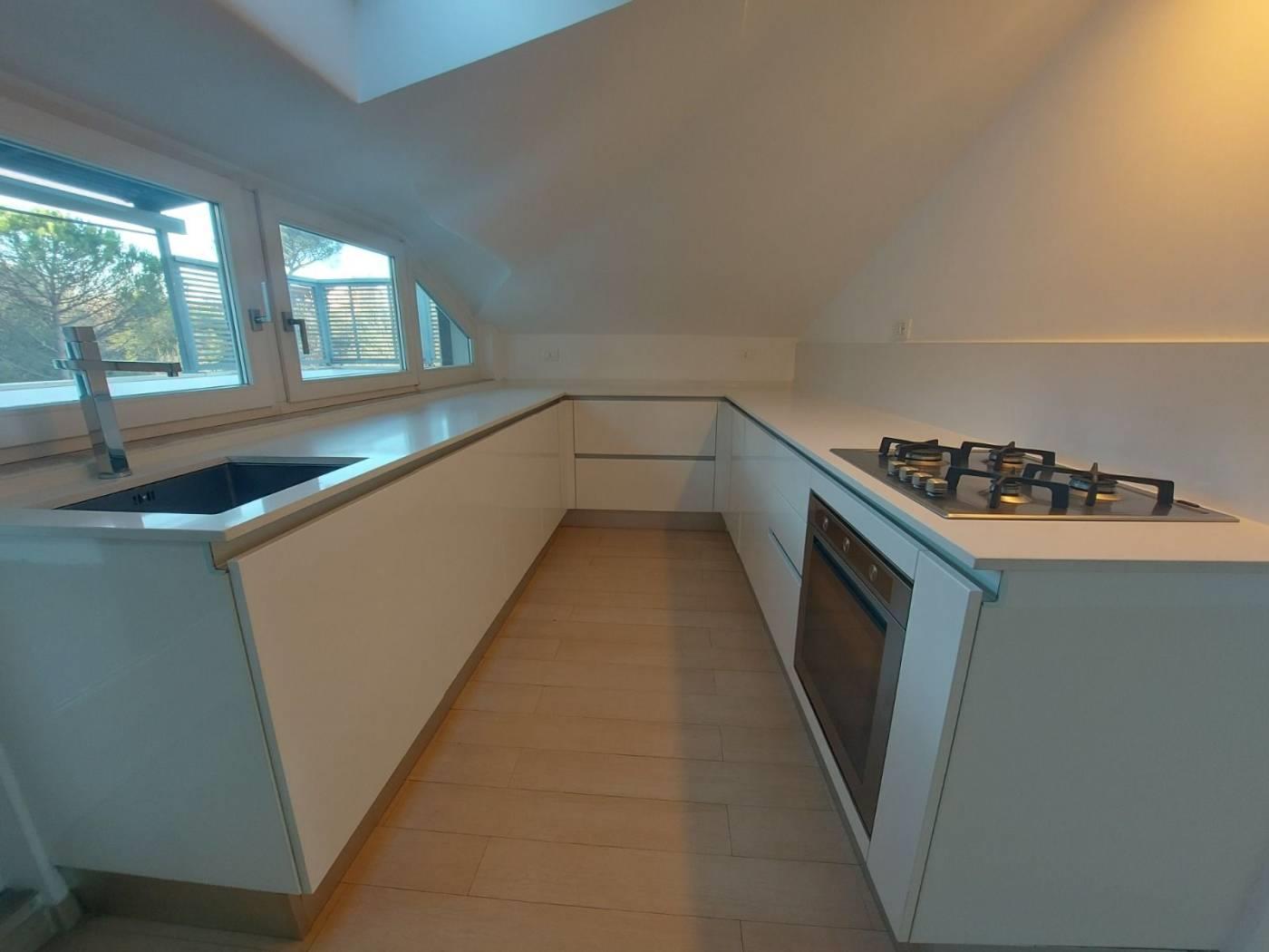 Il riscaldamento è autonomo e le spese condominiali sono di euro 35 mensili. Le ottime rifiniture, le finestre velux e i doppi vetri antisfondamento garantiscono un comfort elevato. La cucina è arredata con piano in okite e l'appartamento è dotato di aria condizionata Daikin. Il bagno è caratterizzato da una doccia in mosaico di Bisazza. Lavatrice nuova SMEG. Le tende oscillanti e la tenda per il terrazzo di Unopiù completano il quadro di questa soluzione abitativa.