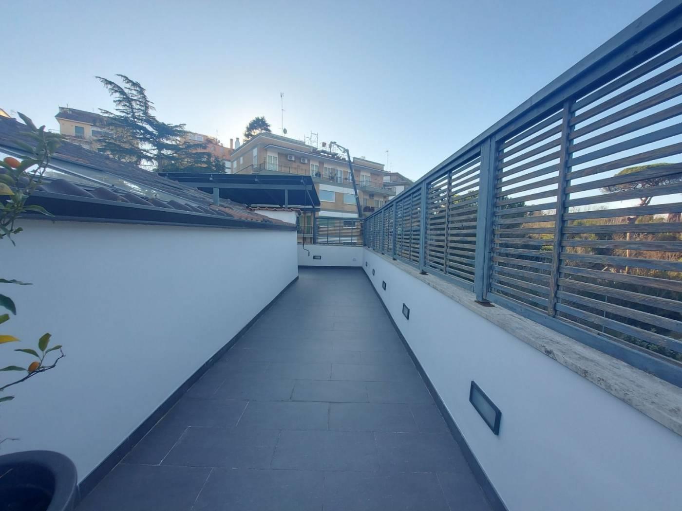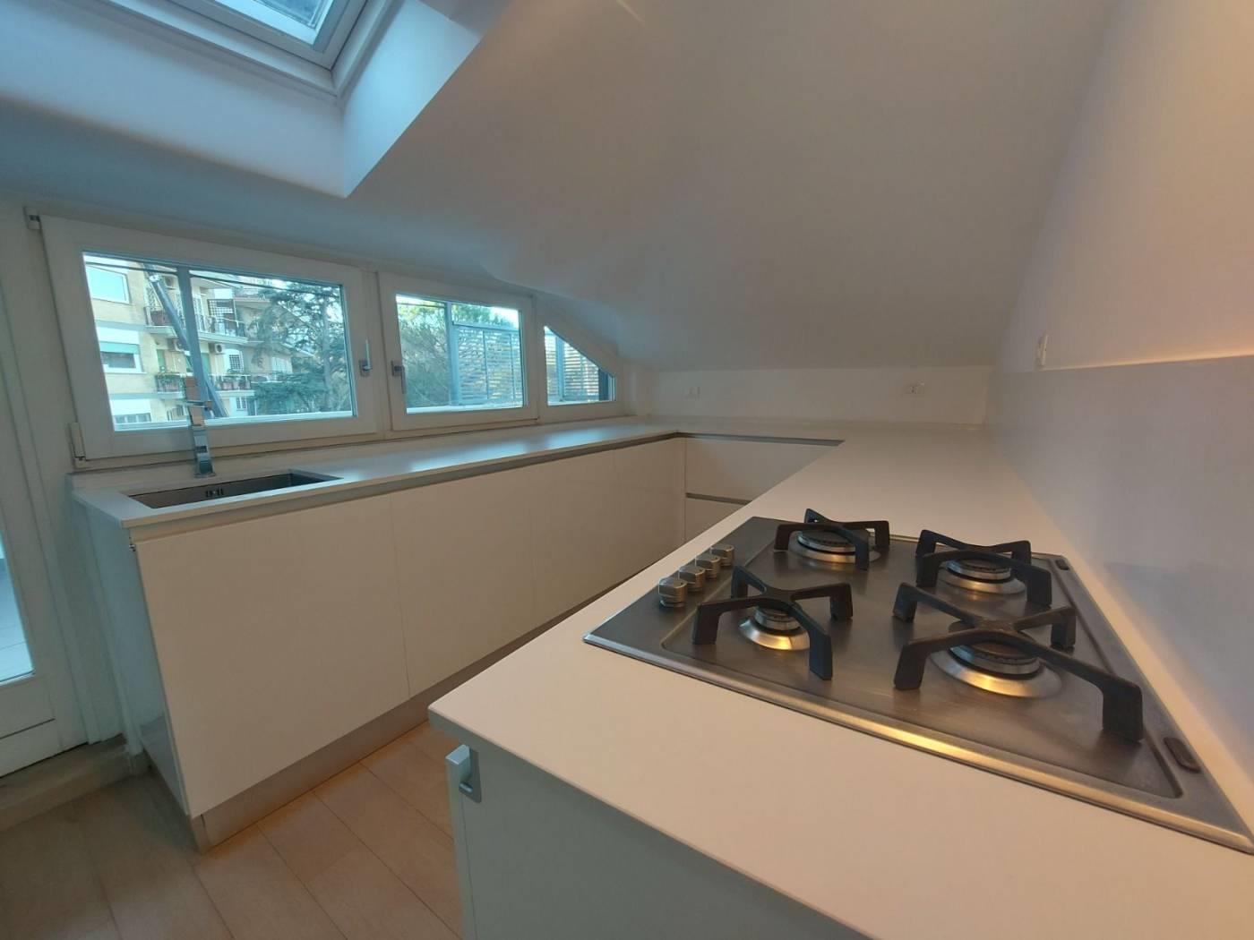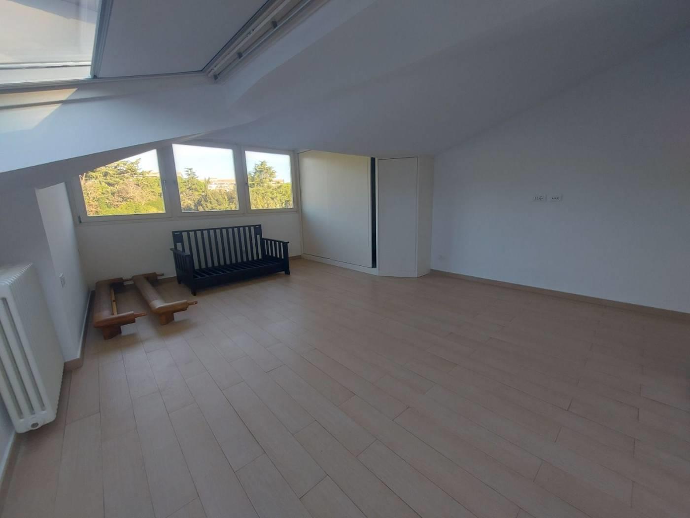 Attico finemente restaurato con una grande terrazza di circa 40 mq, da cui si può godere di uno splendido affaccio sul verde circostante. L'appartamento presenta un caratteristico loft soggiorno con zona letto, una cucina completamente arredata e un bagno.