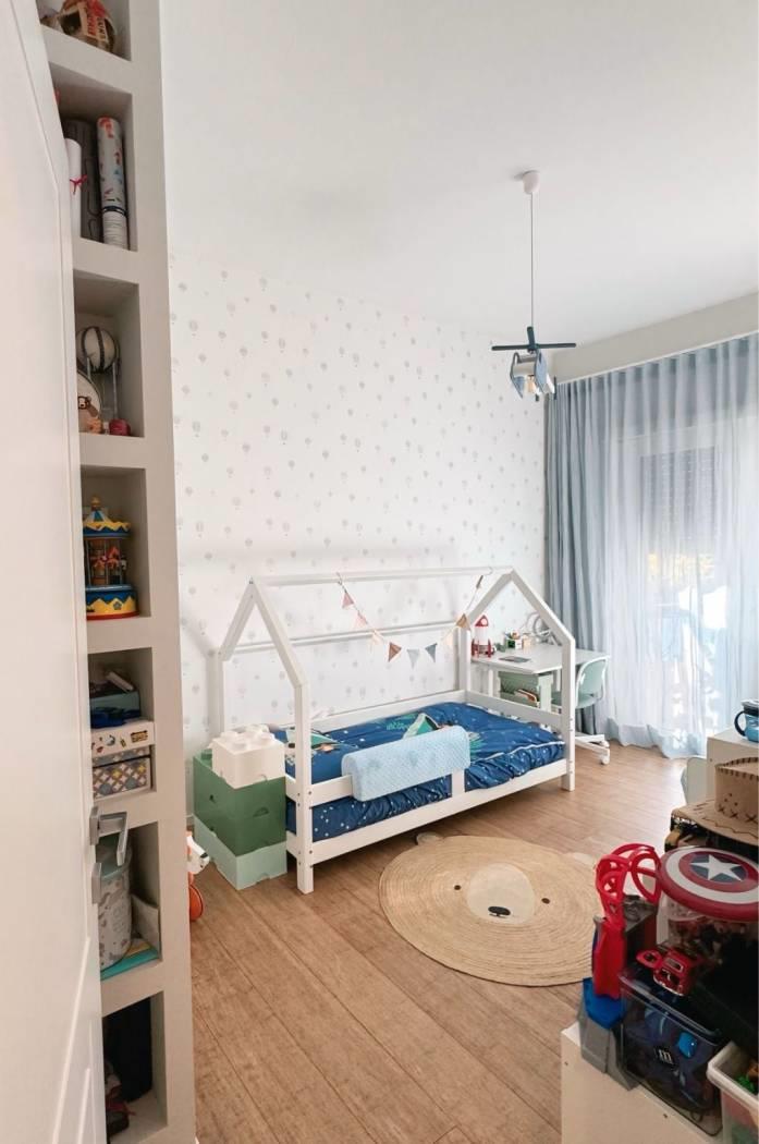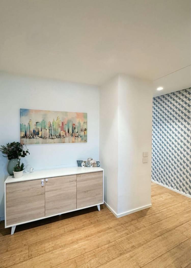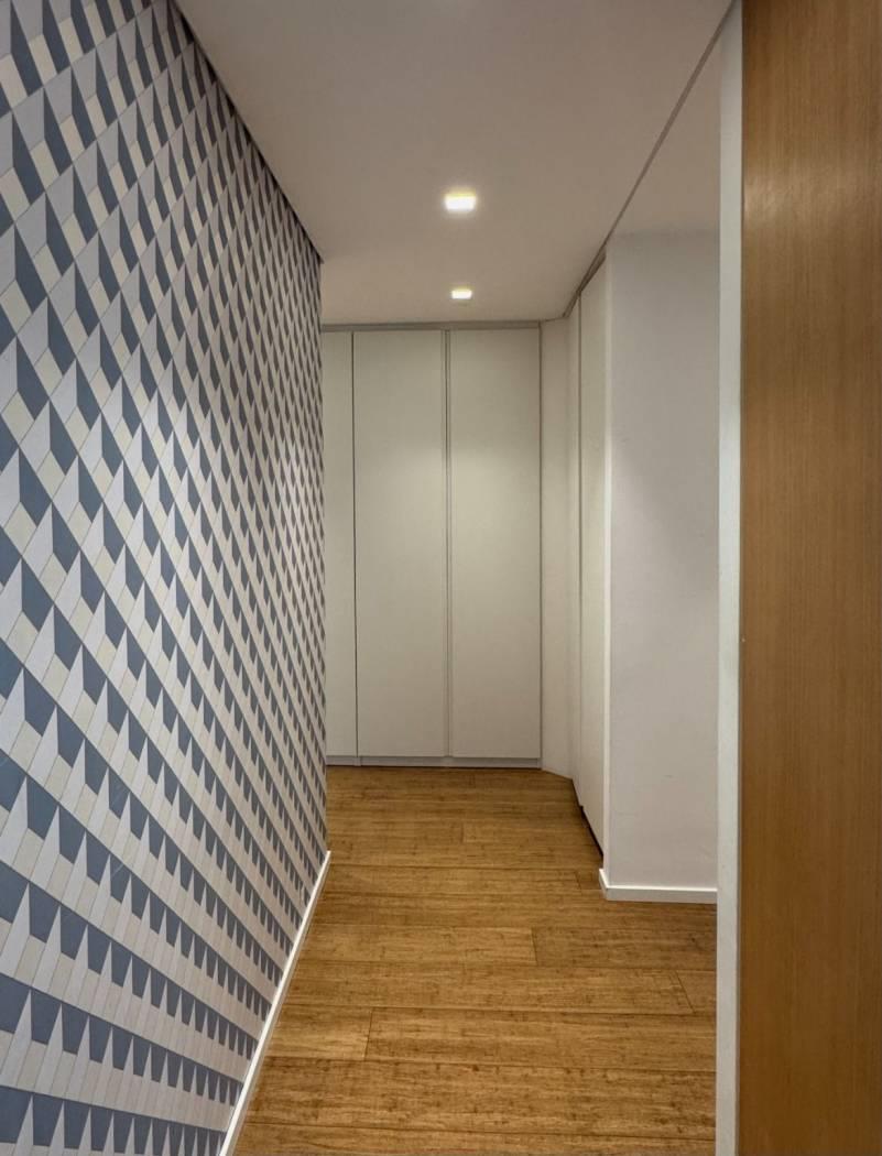 Un lungo disimpegno, valorizzato da una bellissima carta da parati e da una lunga armadiatura a muro, ci porta verso la zona notte, dove troviamo tre camere da letto, di cui una con comoda cabina armadio, e due bagni, entrambi finestrati e con doccia.