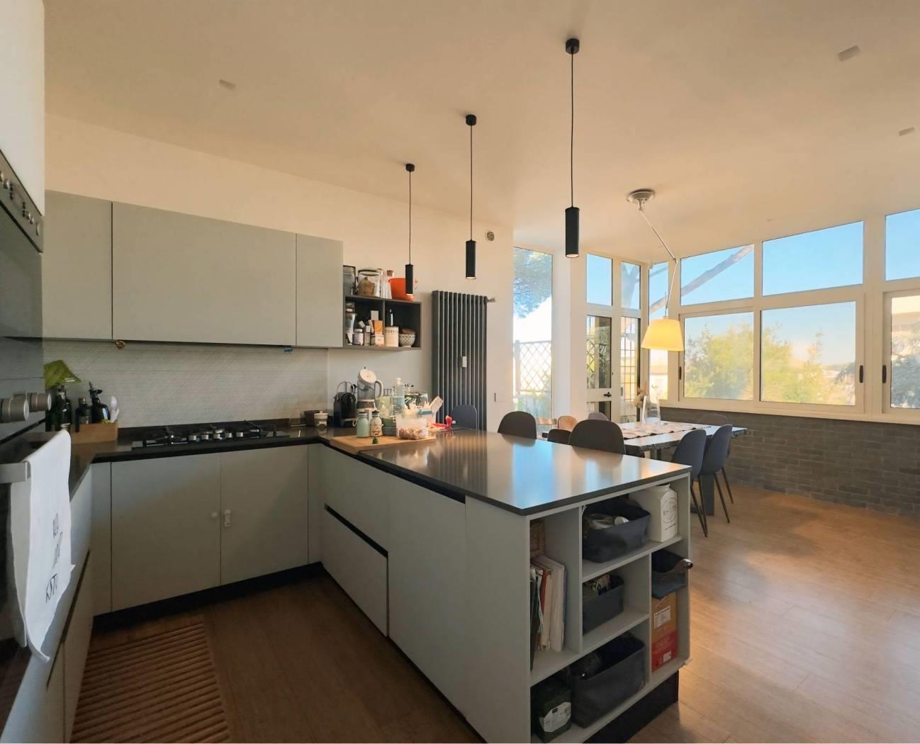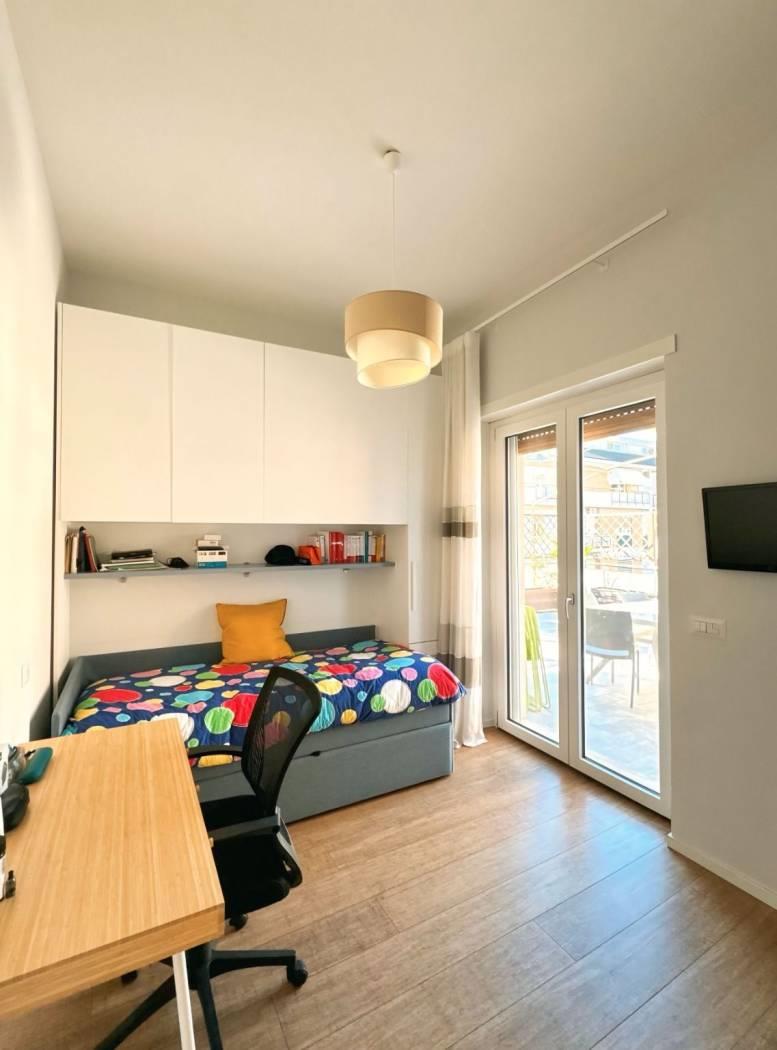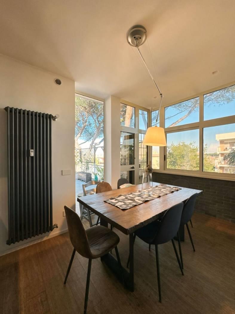 In Via Mompeo, una strada privata con accesso riservato tramite cancello, proponiamo in vendita un attico di 125 mq, completamente e finemente ristrutturato, caratterizzato da un meraviglioso terrazzo di circa 85 mq, che abbraccia ogni stanza della casa.