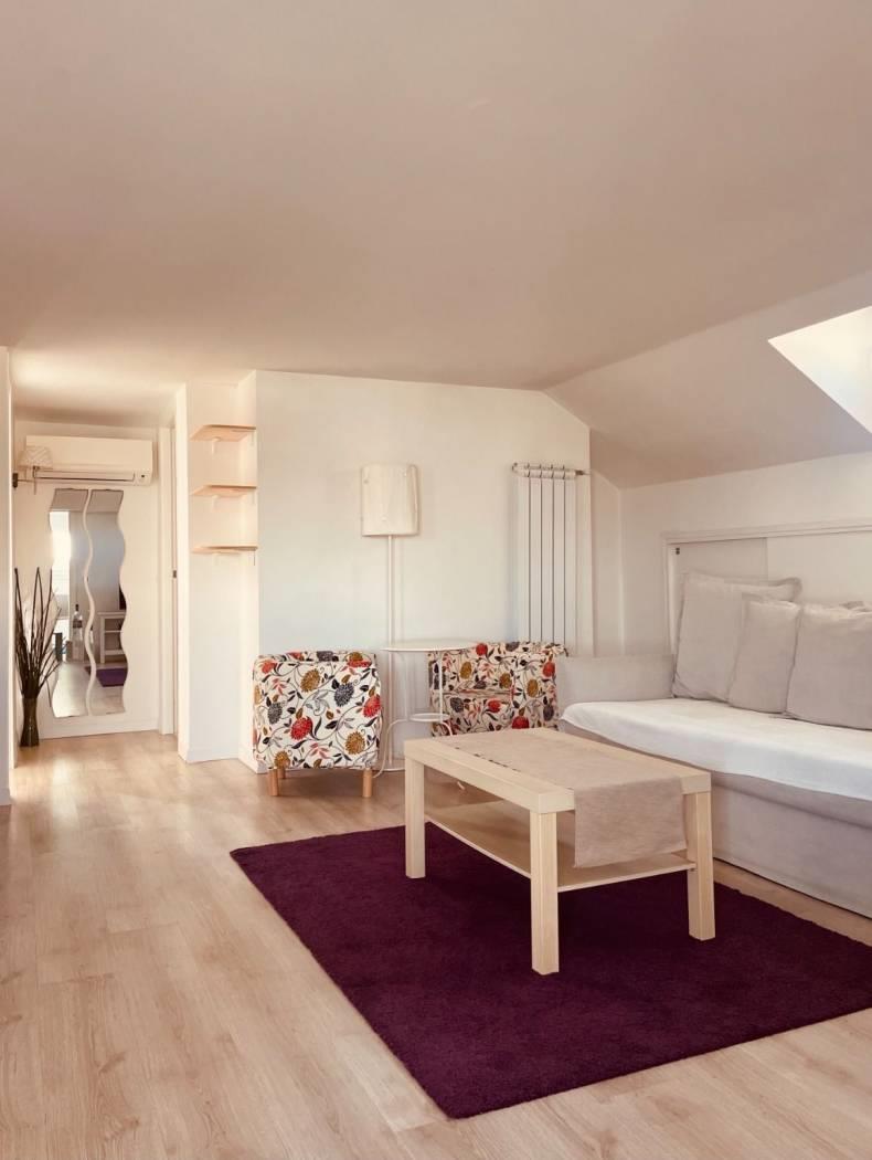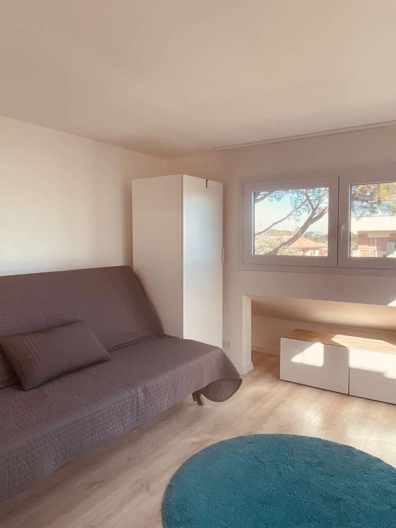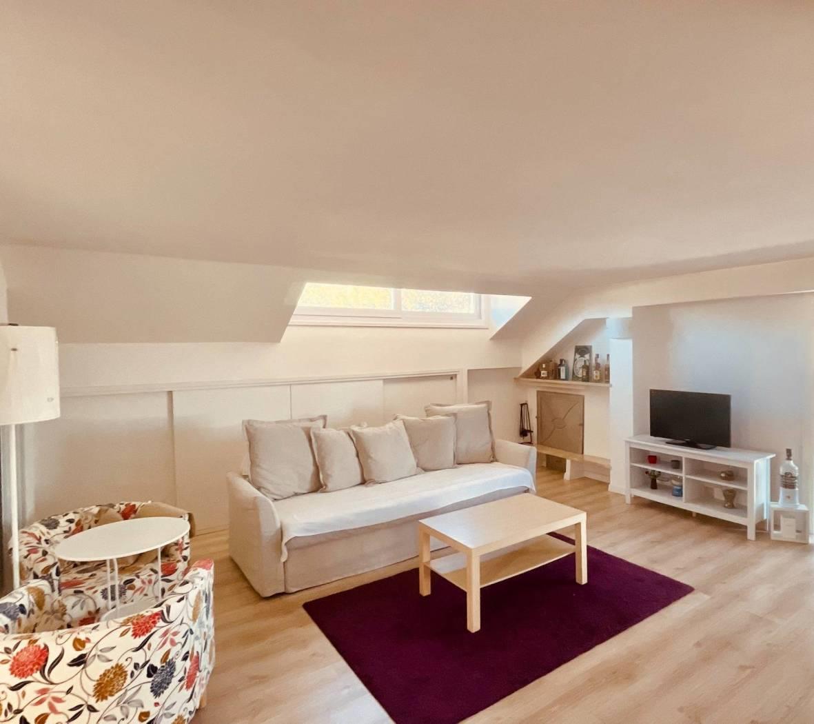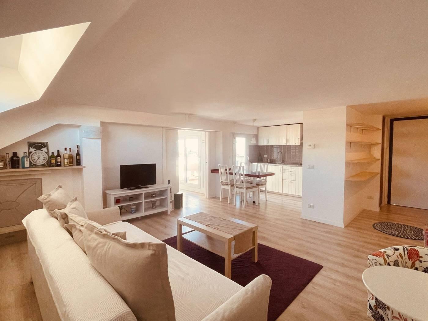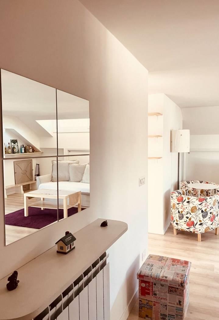In Via Mompeo, una strada privata con sbarra, proponiamo in locazione un luminoso superattico mansardato di mq 63,