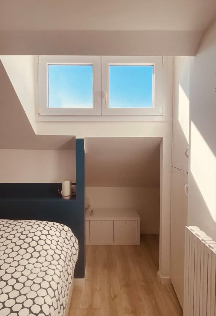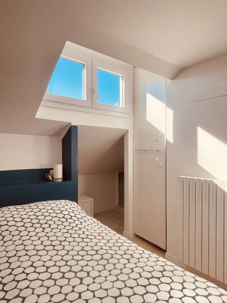 La luce naturale, i soffitti spioventi ed il terrazzino panoramico rendono la casa un rifugio accogliente ed affascinante, di cui è impossibile non innamorarsi.