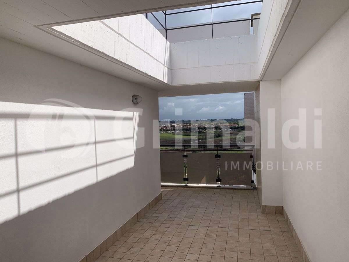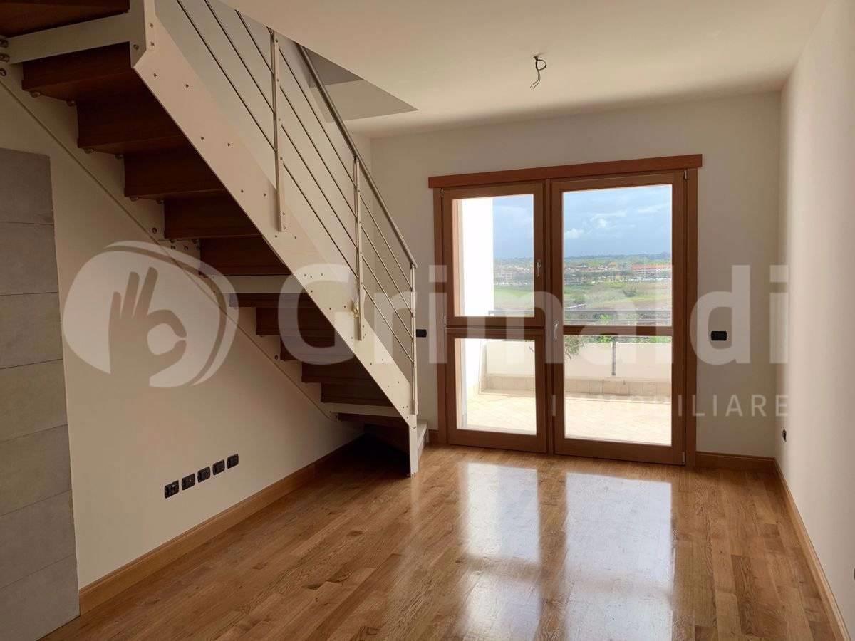 L'appartamento, realizzato rispettando tutti i principali concetti moderni e con l'utilizzo di pregiati materiali, è composto al piano quinto da soggiorno con cucina a vista (NON ARREDATA), camera matrimoniale, servizio con doccia, terrazzo; la scala interna lineare conduce al piano superiore dove troviamo una grande camera ed un terrazzo angolare.