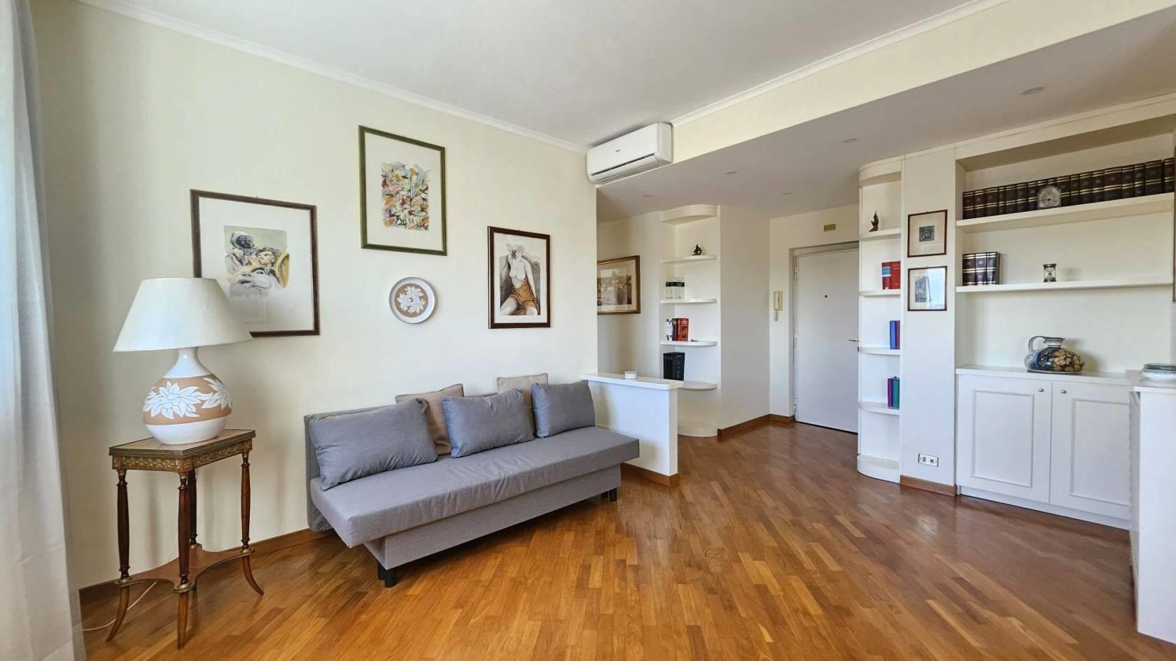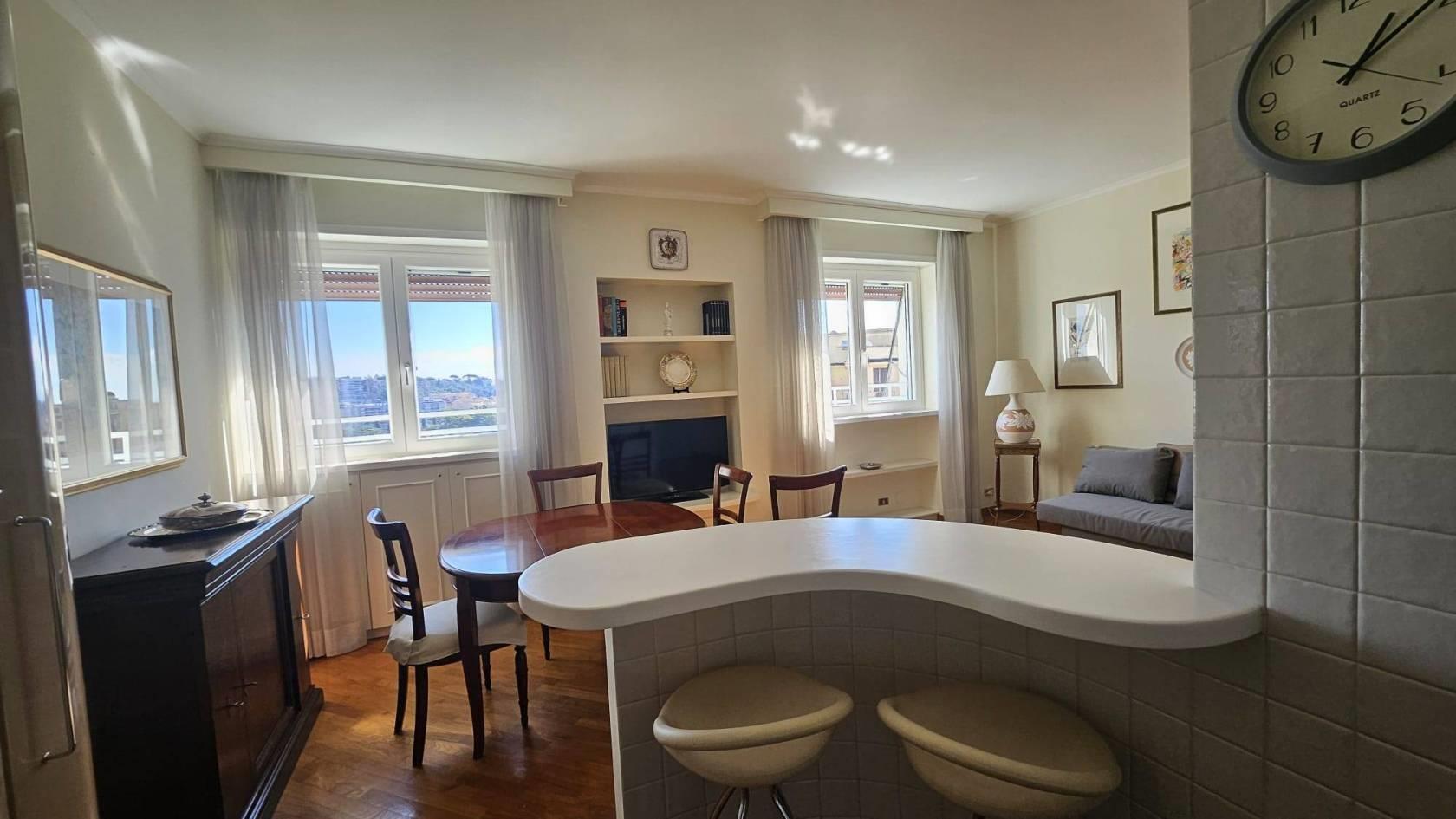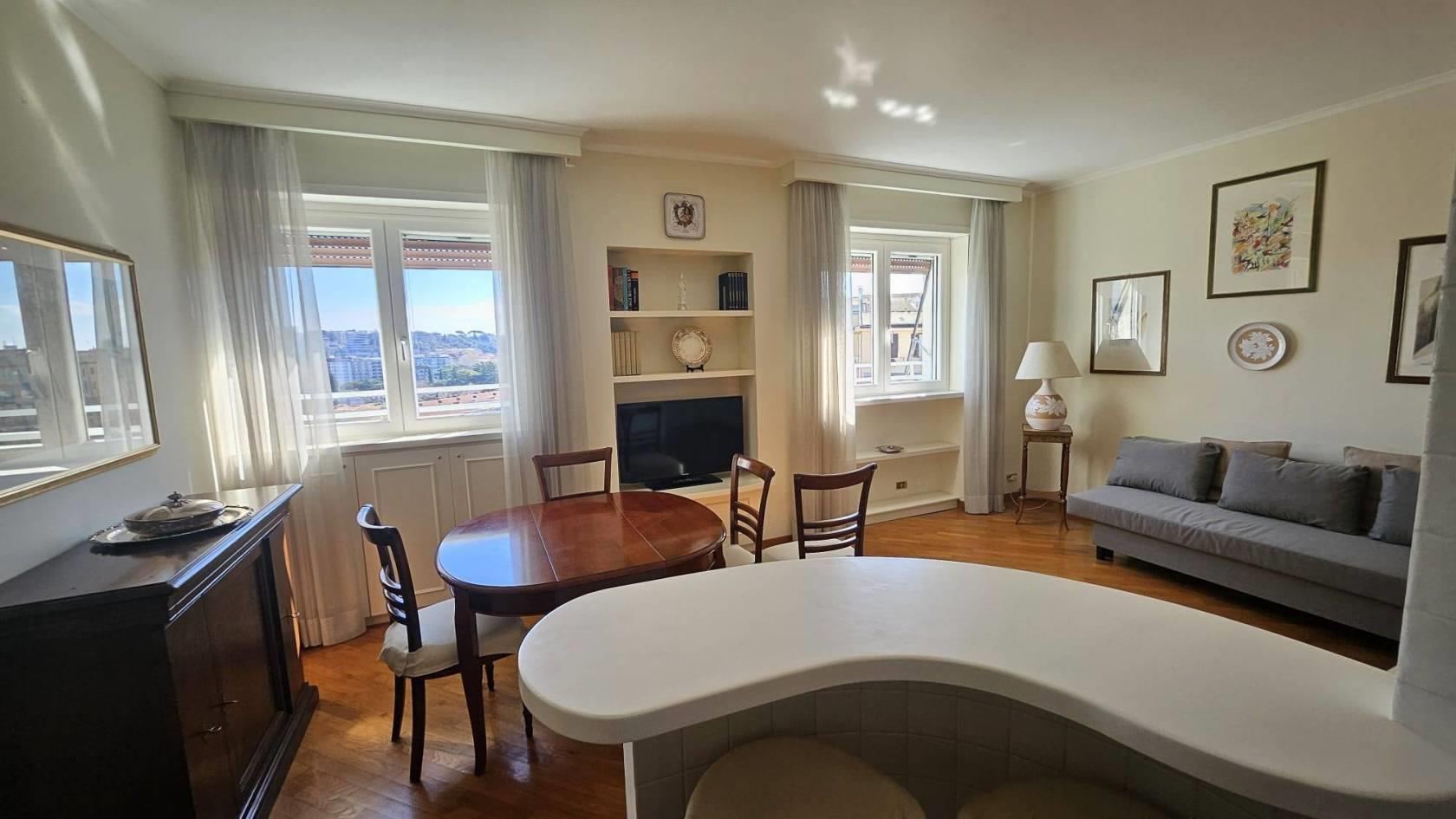 Residenzere propone in locazione nel Quartiere Residenziale del Flaminio e più precisamente in Viale Pinturicchio, lato ponte della musica, un delizioso e rifinito appartamento di circa 60 mq posto al 10° piano di una palazzina di 10. L’appartamento completamente arredato si presenta in ottime condizioni manutentive risulta essere silenzioso e molto luminoso, con tutti affacci aperti, con servizio di portineria diurna ed è così composto: Ingresso su soggiorno/pranzo, delizioso angolo cottura a vista arredato, camera con bagno en suite, ampio ripostiglio/guardaroba. L’appartamento è disponibile da subito. NO ATTIVITA' RICETTIVE. Prezzo richiesto € 1.450, 00, il condominio è di € 130,00 circa a mese. Sono richieste garanzie bancarie. Vivere al Flaminio significa godere di un’atmosfera unica, con tutti i servizi a portata di mano ma comunque in contesto residenziale esclusivo ben collegato con i servizi pubblici. A poca distanza dall’appartamento si trovano negozi e servizi di vario genere numerose attività commerciali quali supermercati, negozi, banche, ristoranti, farmacie, scuole ed uffici pubblici, parchi pubblici raggiungibili a piedi. Per maggiori informazioni potete contattare il 379 1664173 e/o 366 8150915, altrimenti inviare una e-mail a info@residenzere.com. I dati si intendono corretti ma non garantiti, l’annuncio non costituisce, in nessun caso, documento contrattuale. In un’ottica di crescita e potenziamento del team, la nostra agenzia con ufficio in zona Roma Nord (Flaminio) è alla ricerca di consulenti immobiliari motivati e con comprovata esperienza, da inserire in collaborazione per attività di vendita/acquisizione. Se interessati, inviare un contatto via mail a info@residenzere.com oppure chiamare il 366 8150915.