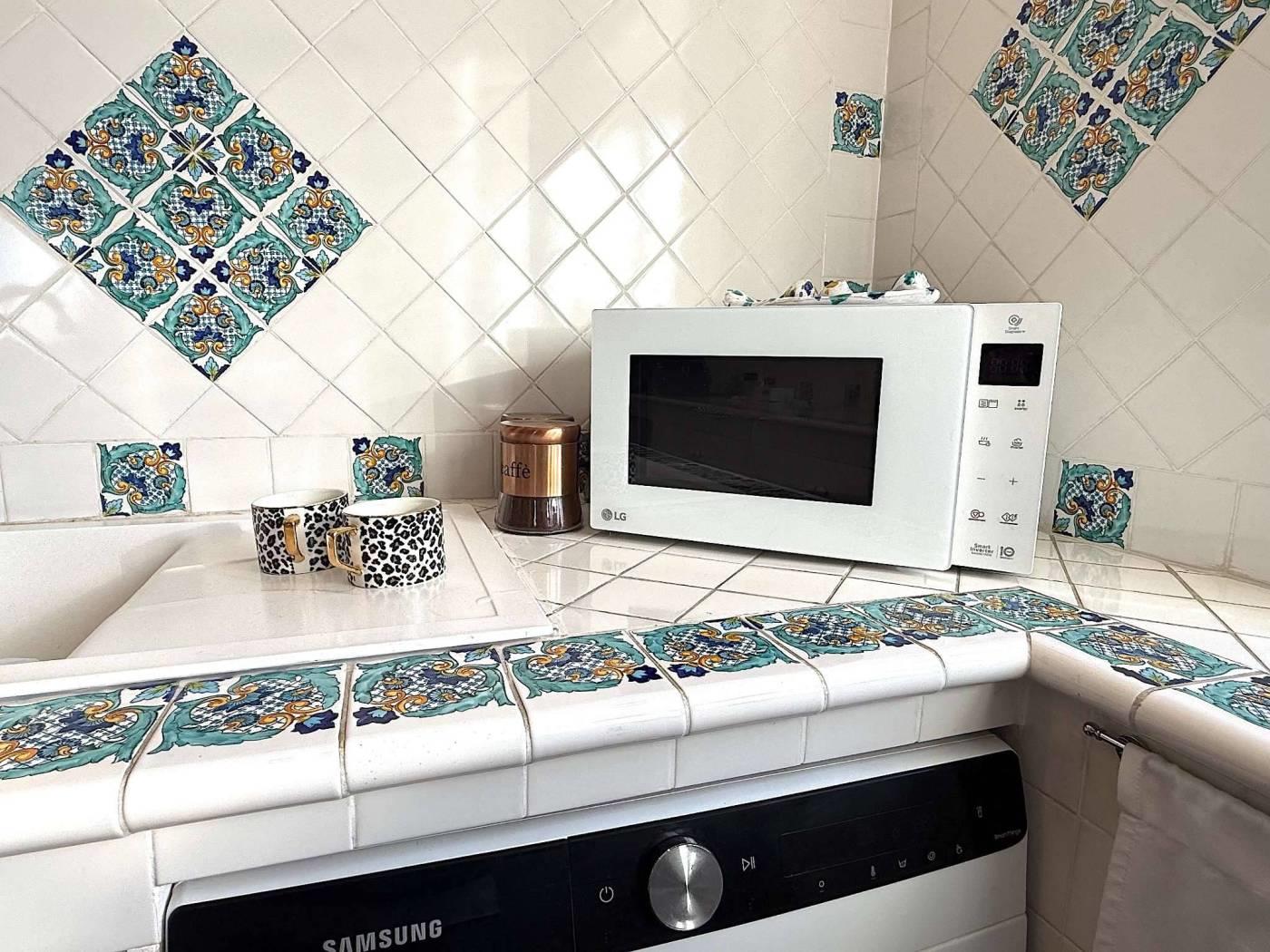 zona pranzo, cucina a vista completamente arredata