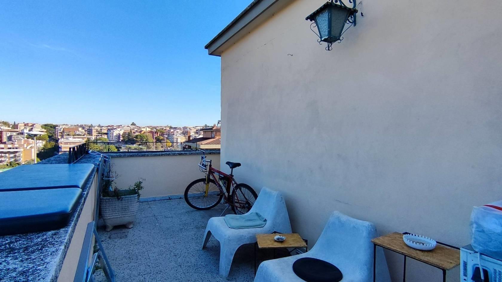 Portuense adiacente European Hospital Superattico Locato al canone annuo di 10.200 € in palazzina in cortina composto da Ingresso Soggiorno Camera Cucina Servizio Veranda Terrazzo angolare.