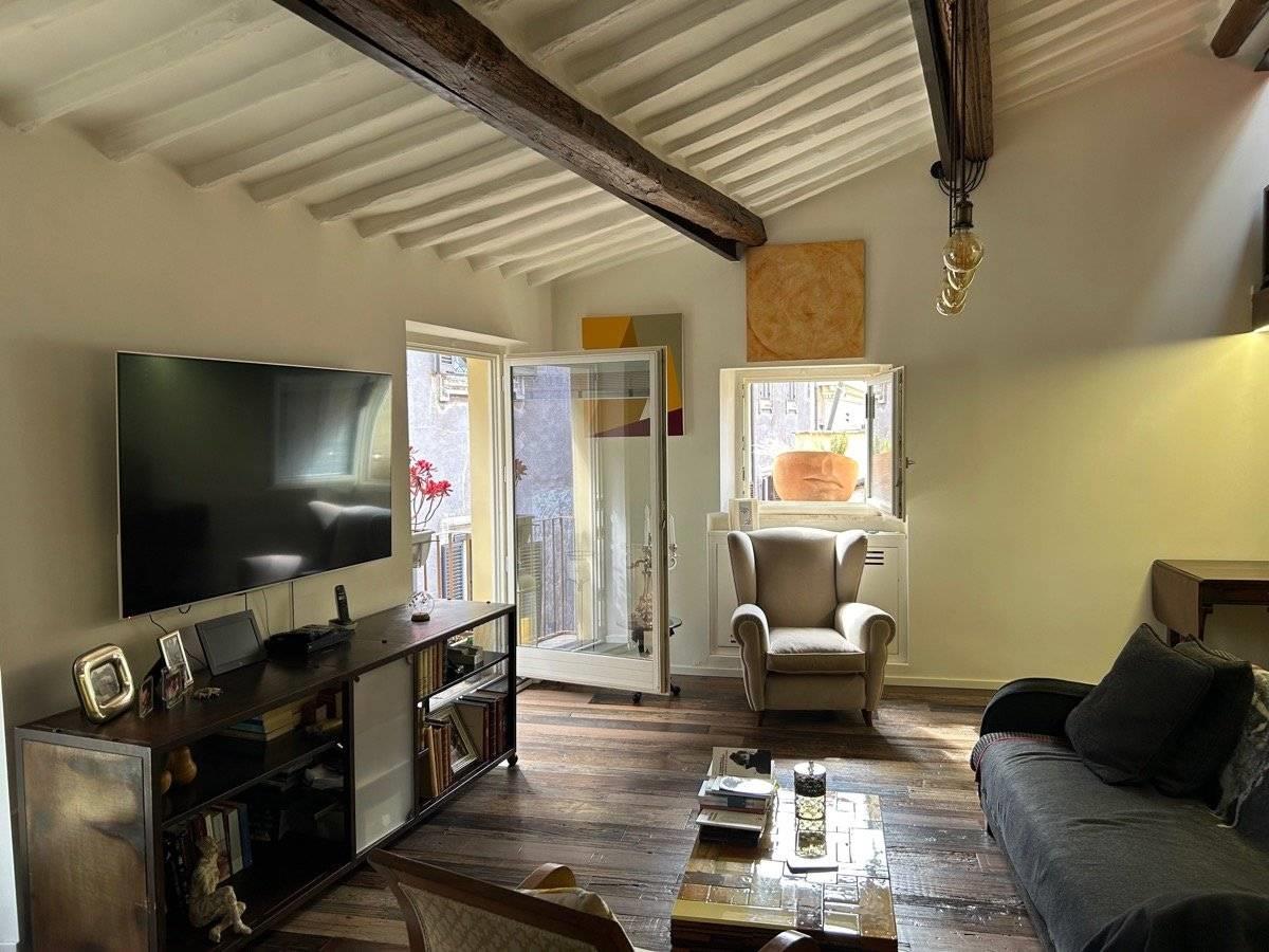 Nel prestigioso contesto del centro storico di Roma, a pochi passi dai più celebri monumenti e caffè culturali della città eterna, proponiamo in affitto un affascinante attico di 110 mq distribuiti su due livelli, situato all’ultimo piano di un palazzo d’epoca di fine '800, con ascensore (ultima rampa a piedi).
