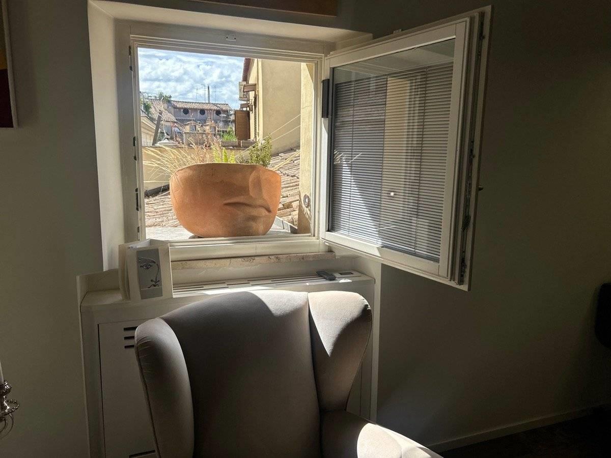 La zona servizi e’ composta da due bagni, una cabina armadio e numerosi angoli ricchi di fascino, con suggestivi scorci sui tetti di Roma, che regalano un’atmosfera unica e senza tempo.