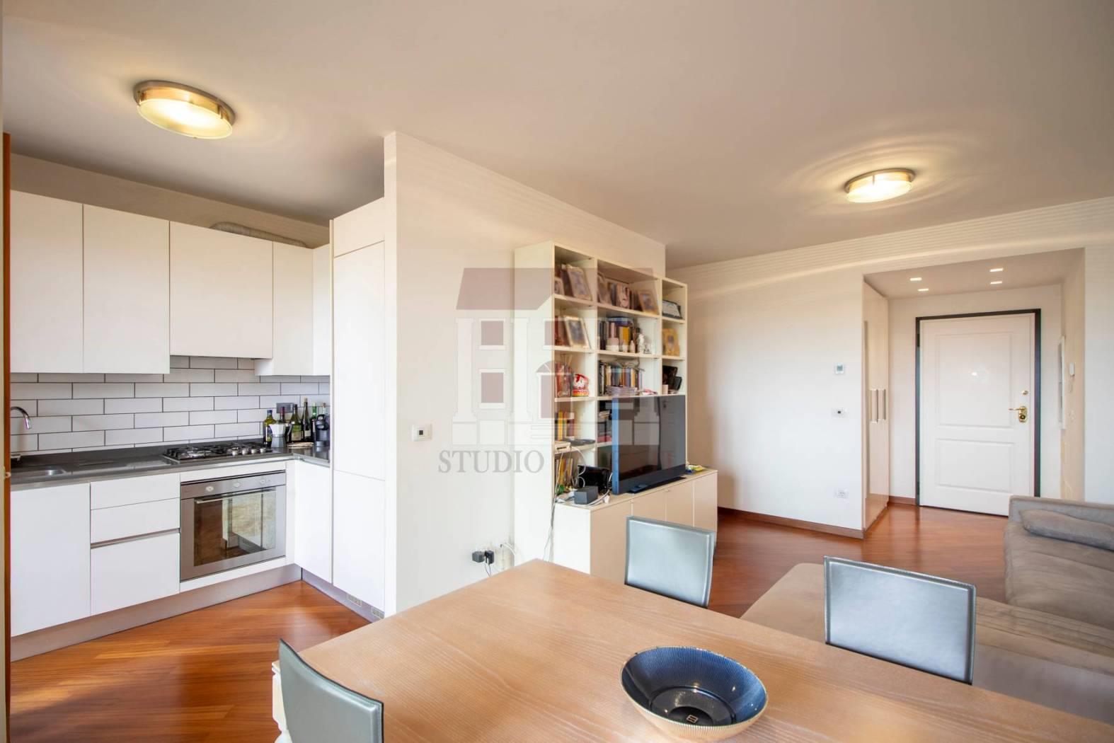 Piano 7 (attico): l’abitazione ci accoglie con un ingresso che conduce al luminoso soggiorno, una cucina abitabile, due camere e due bagni, terrazzo di 19 mq , con barbecue elettrico. Ambienti pensati per vivere ogni giorno con armonia e funzionalità.