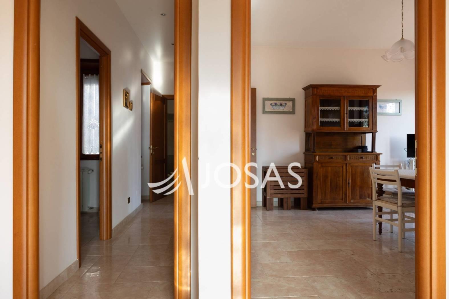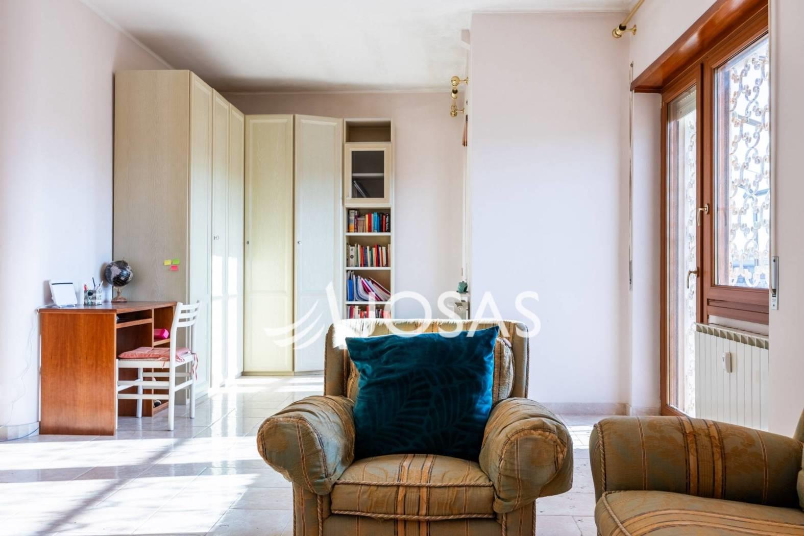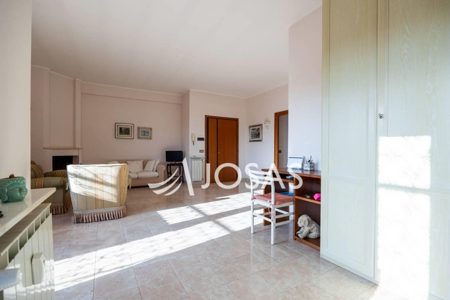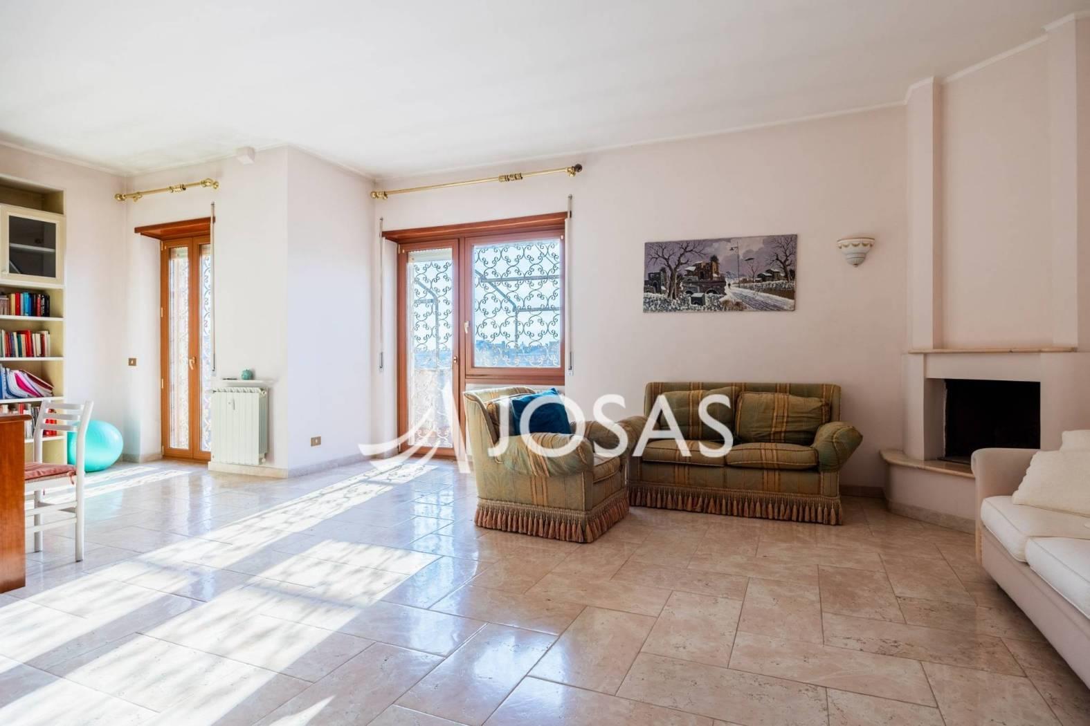 L’abitazione è oggi caratterizzata da ambienti ampi e accoglienti. Il grande salone doppio con camino è il fulcro della casa, uno spazio caldo e rappresentativo che invita alla convivialità, affiancato da una cucina abitabile con tinello.
