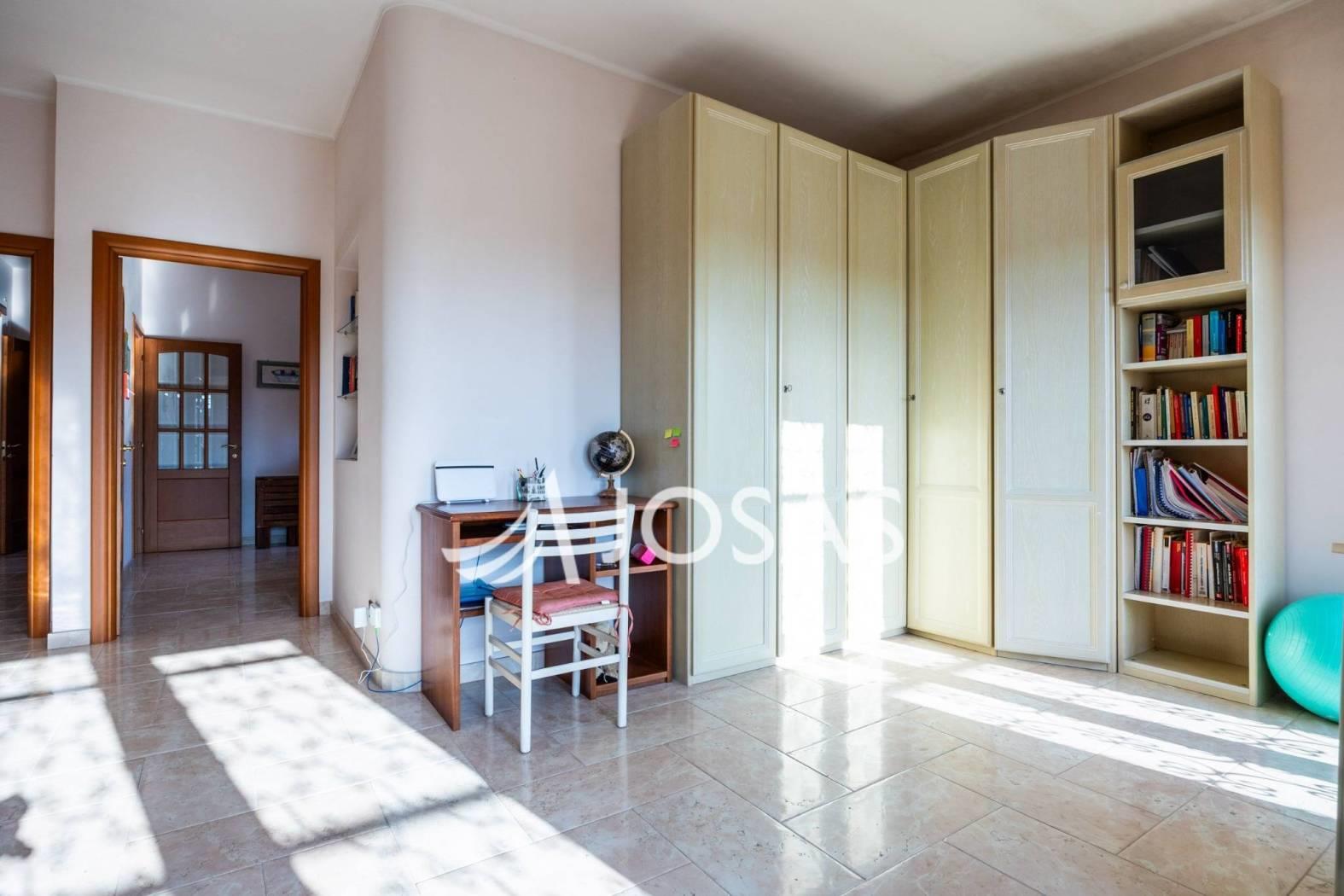 La zona notte offre una spaziosa camera matrimoniale e due bagni entrambi finestrati. La distribuzione interna, estremamente razionale, consente con facilità di ripristinare una seconda camera matrimoniale ed anche una cameretta, adattando la casa alle esigenze di una famiglia o di chi desidera ambienti versatili.