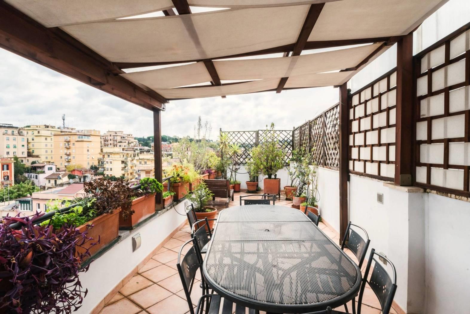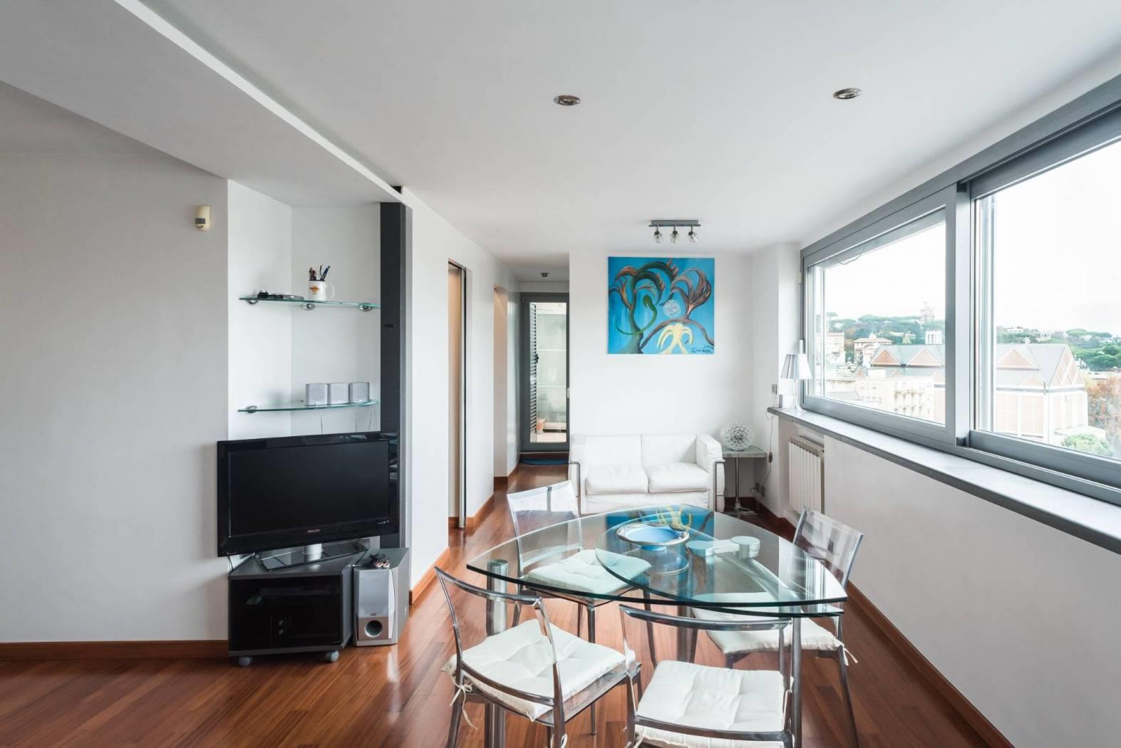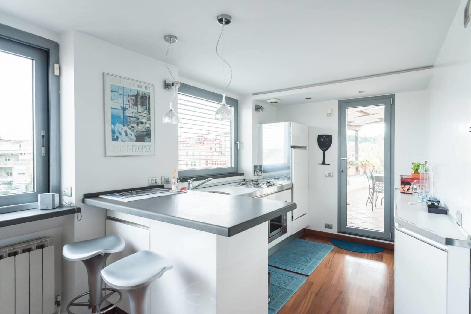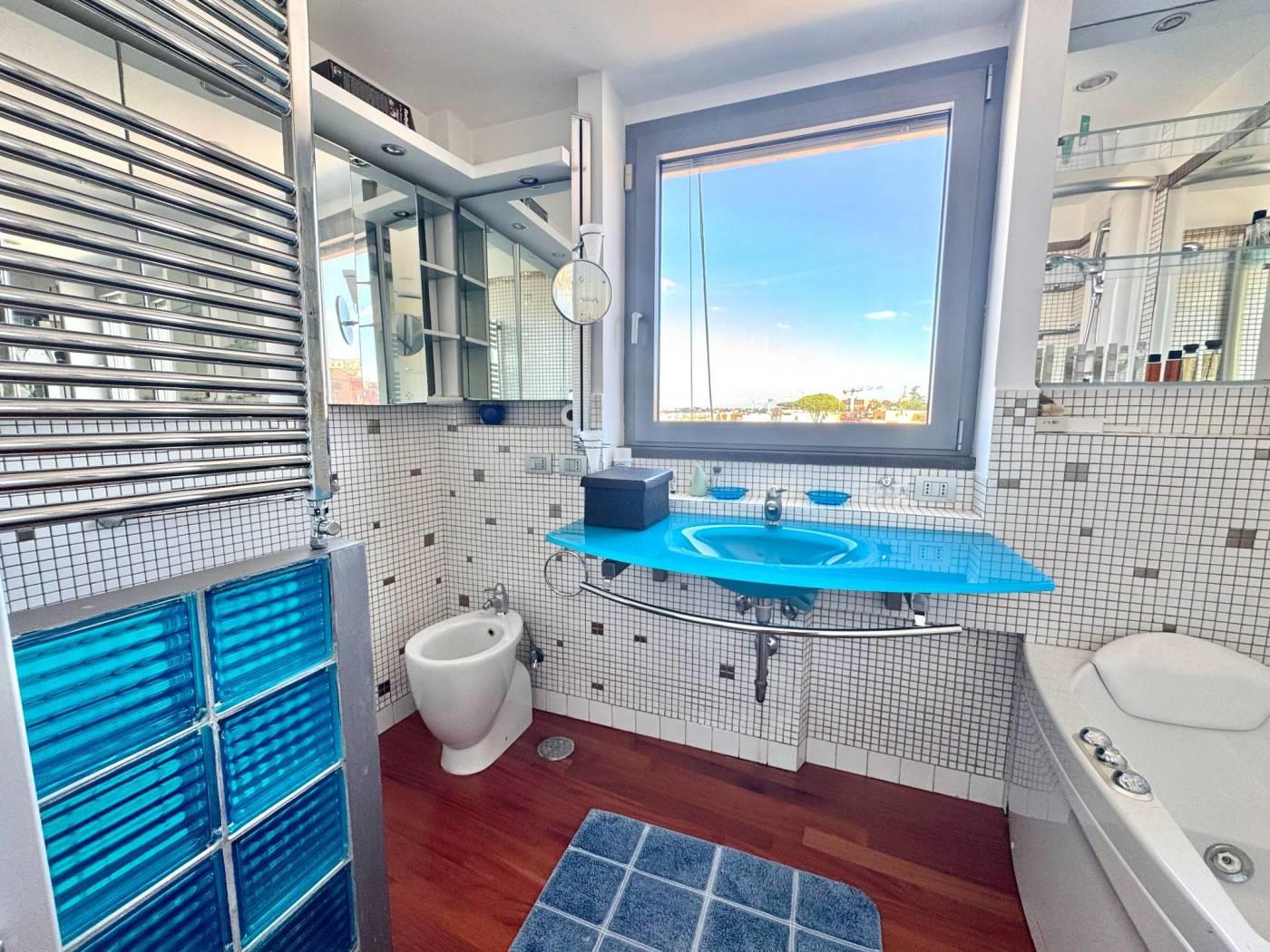 L’immobile è dotato di una spettacolare vista sulla città ed in particolare sulla cupola di San Pietro in quanto è caratterizzato da ampie vetrate a giorno che permettono di godere del panorama dalla quasi totalità degli ambienti della casa. Questa particolare caratteristica lo rende unico nel suo genere e gli conferisce fascino ed eleganza.