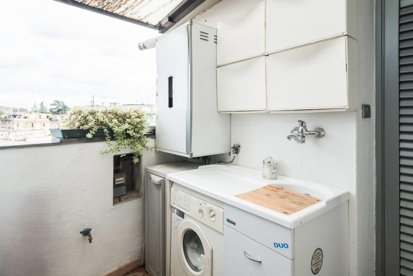 L'immobile è cosi composto: ingresso, ampia zona living con cucina a vista, camera matrimoniale con cabina armadio, bagno con vasca idromassaggio, balcone di servizio con lavatoio e lavanderia di circa 5mq, ampia terrazza abitabile di circa 35mq.