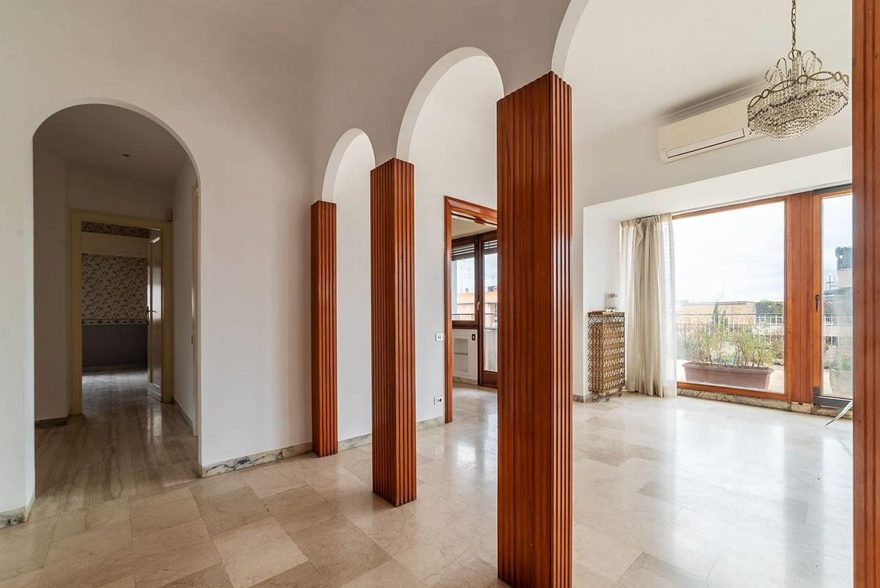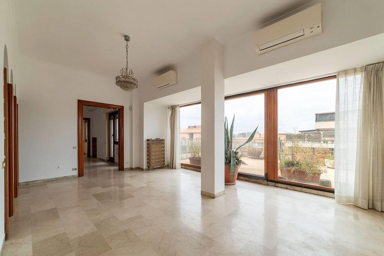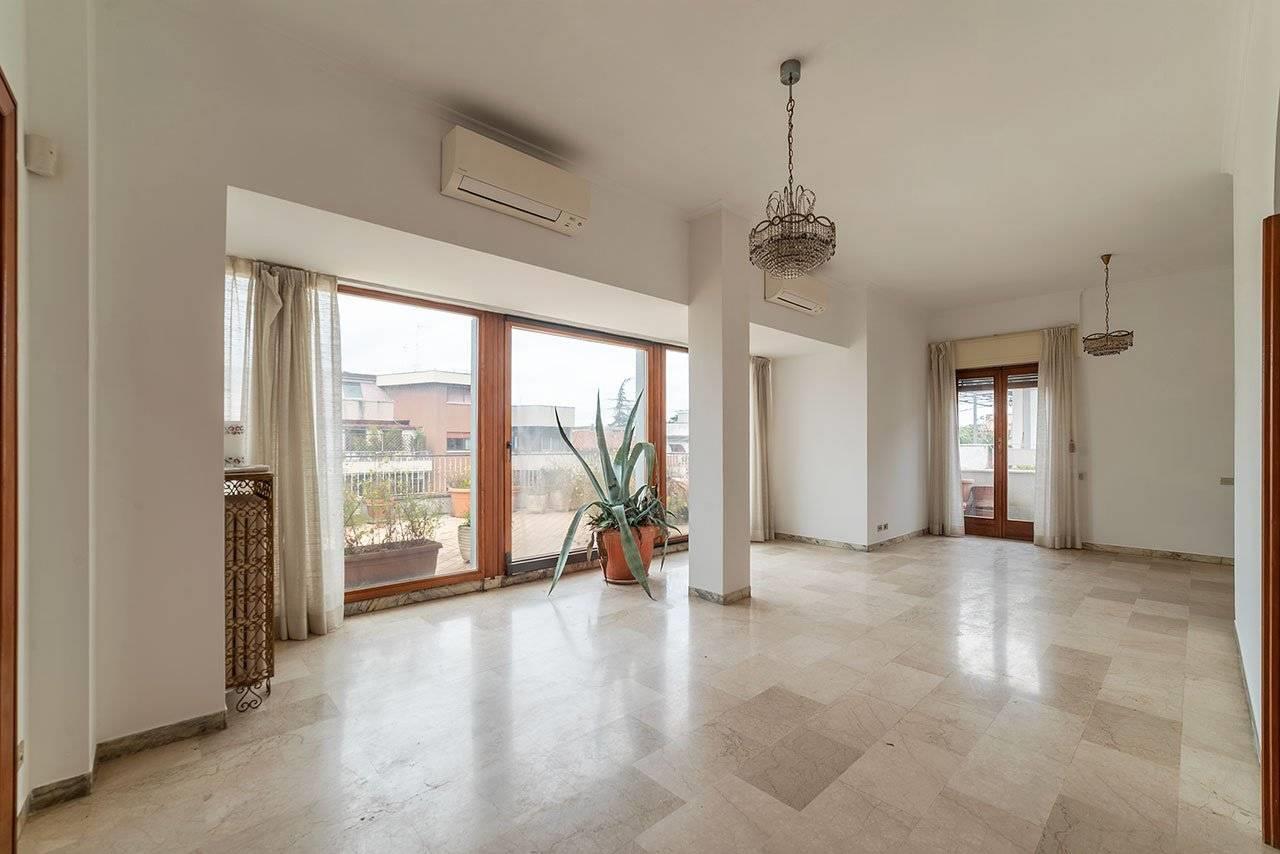 In Via dei Corazzieri, ReLiving è lieta di proporre alla propria Clientela la VENDITA di un LUMINOSO E PANORAMICO ATTICO di 190 mq interni e circa 170 mq di TERRAZZI ubicato in una bella palazzina in buono stato di manutenzione senza servizio di portineria.