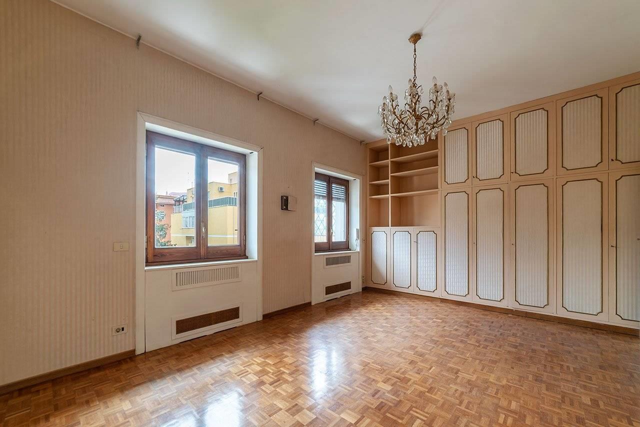 L'appartamento è silenzioso ed attualmente risulta così suddiviso: doppi ingressi, SALONE DOPPIO oltre SALA DA PRANZO con accesso diretto al bellissimo TERRAZZO A LIVELLO, grande STUDIO, CUCINA ABITABILE, TRE CAMERE DA LETTO, cameretta di servizio e TRE BAGNI tutti finestrati.