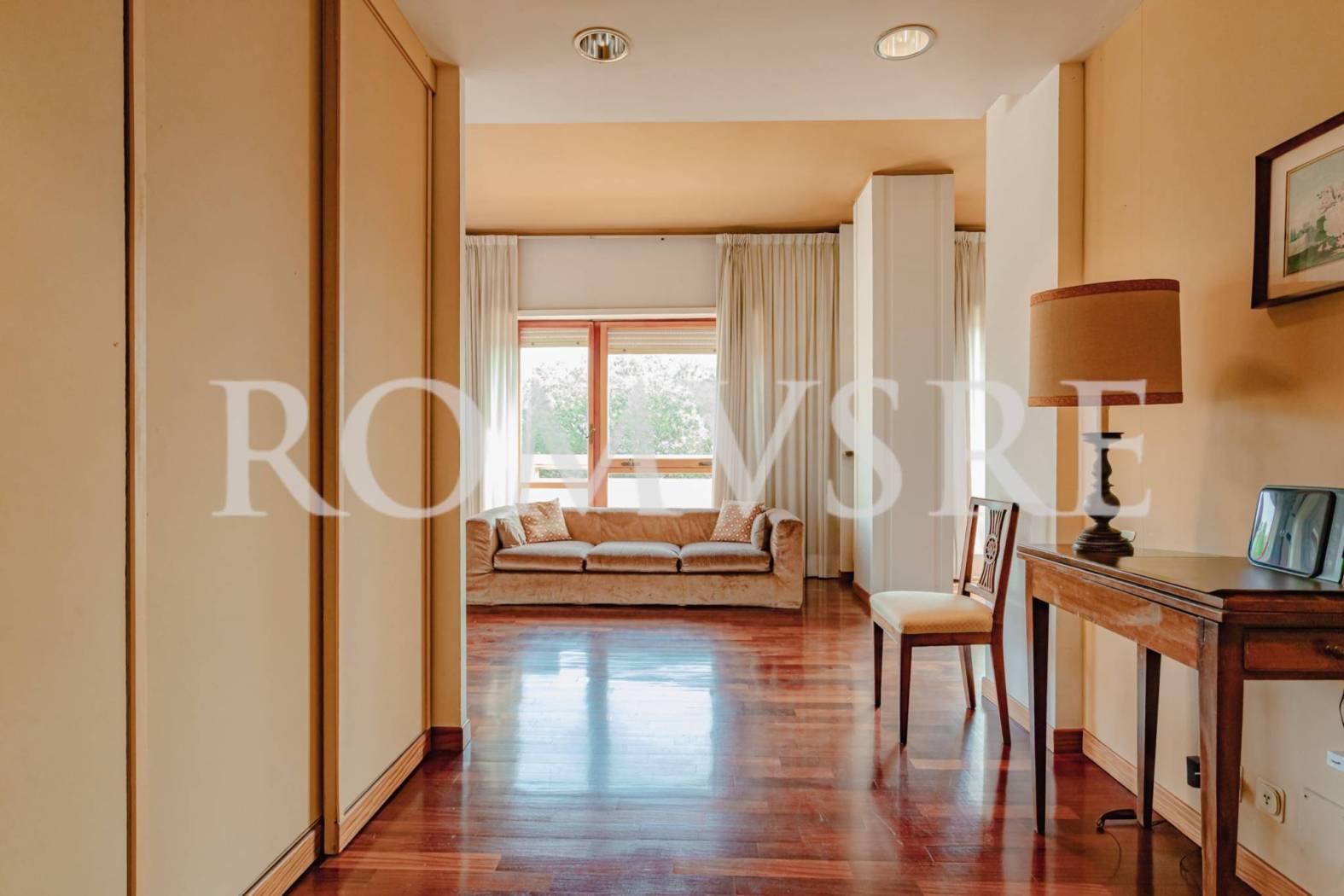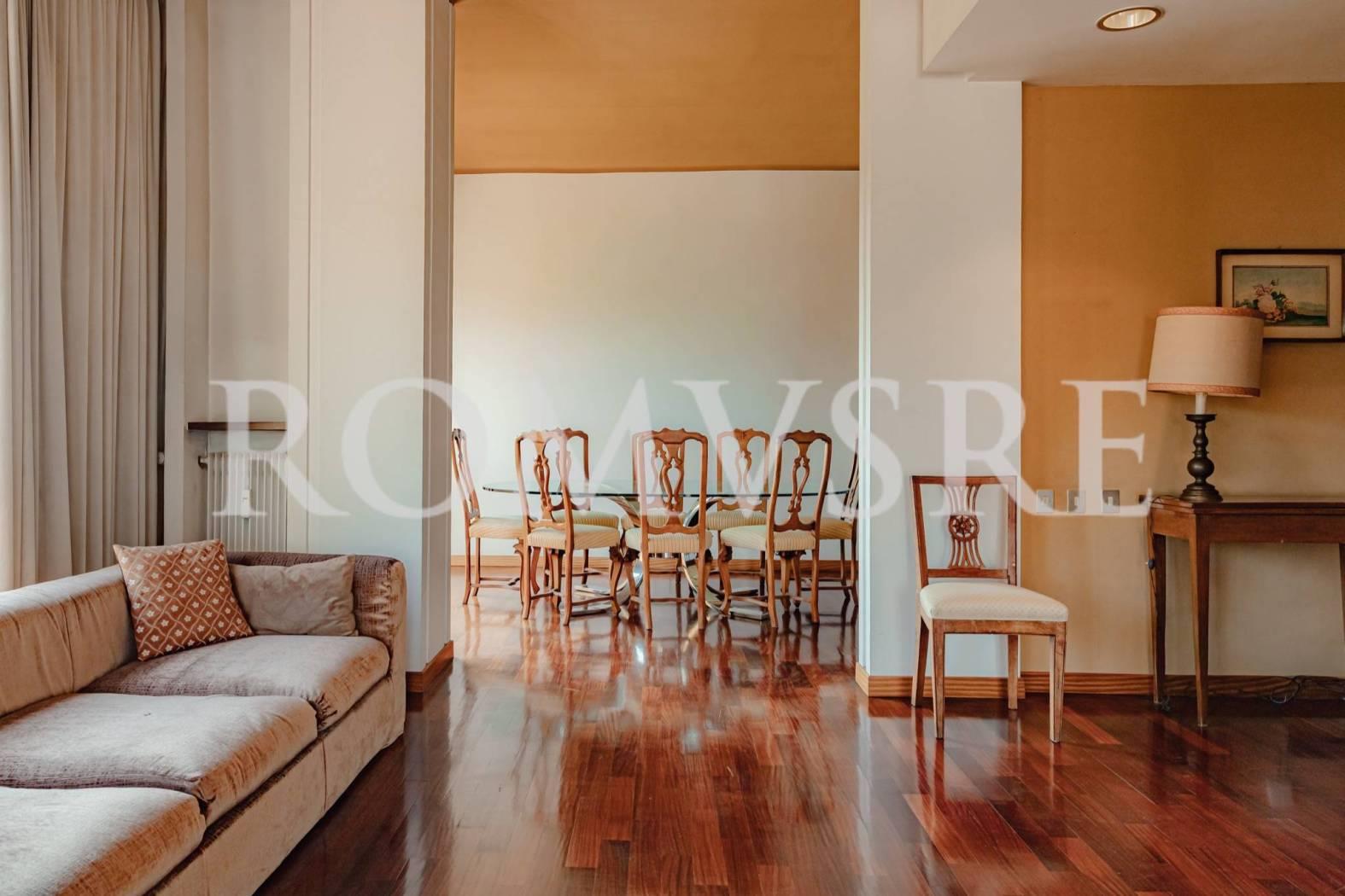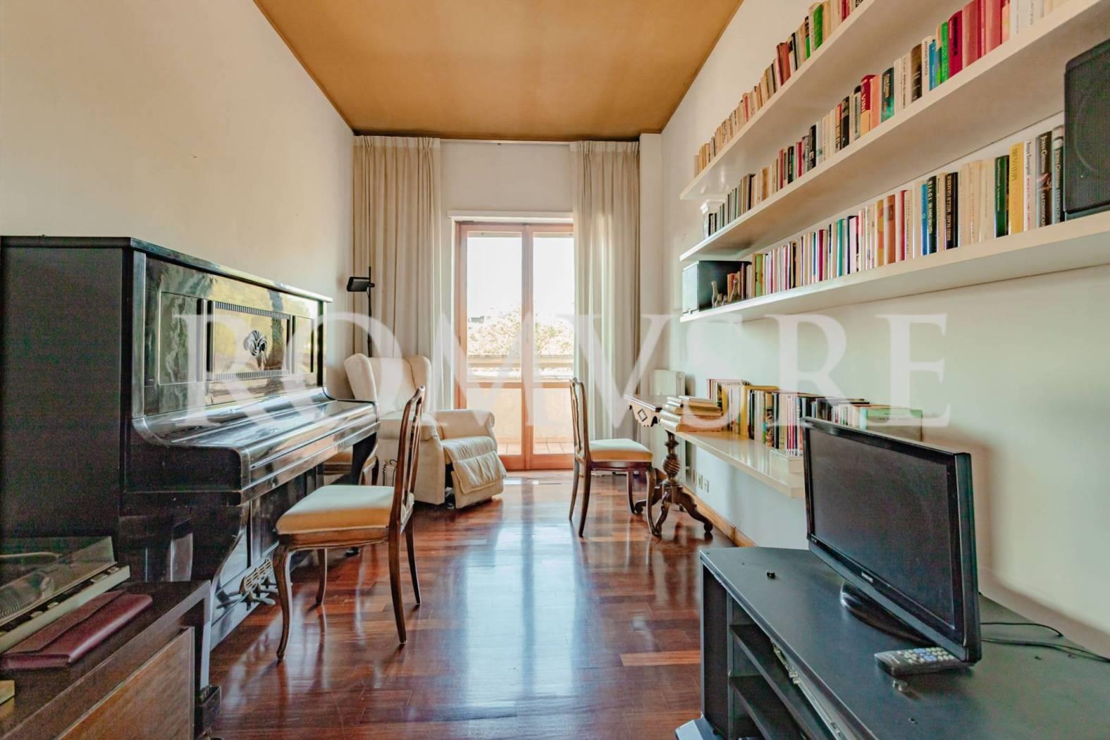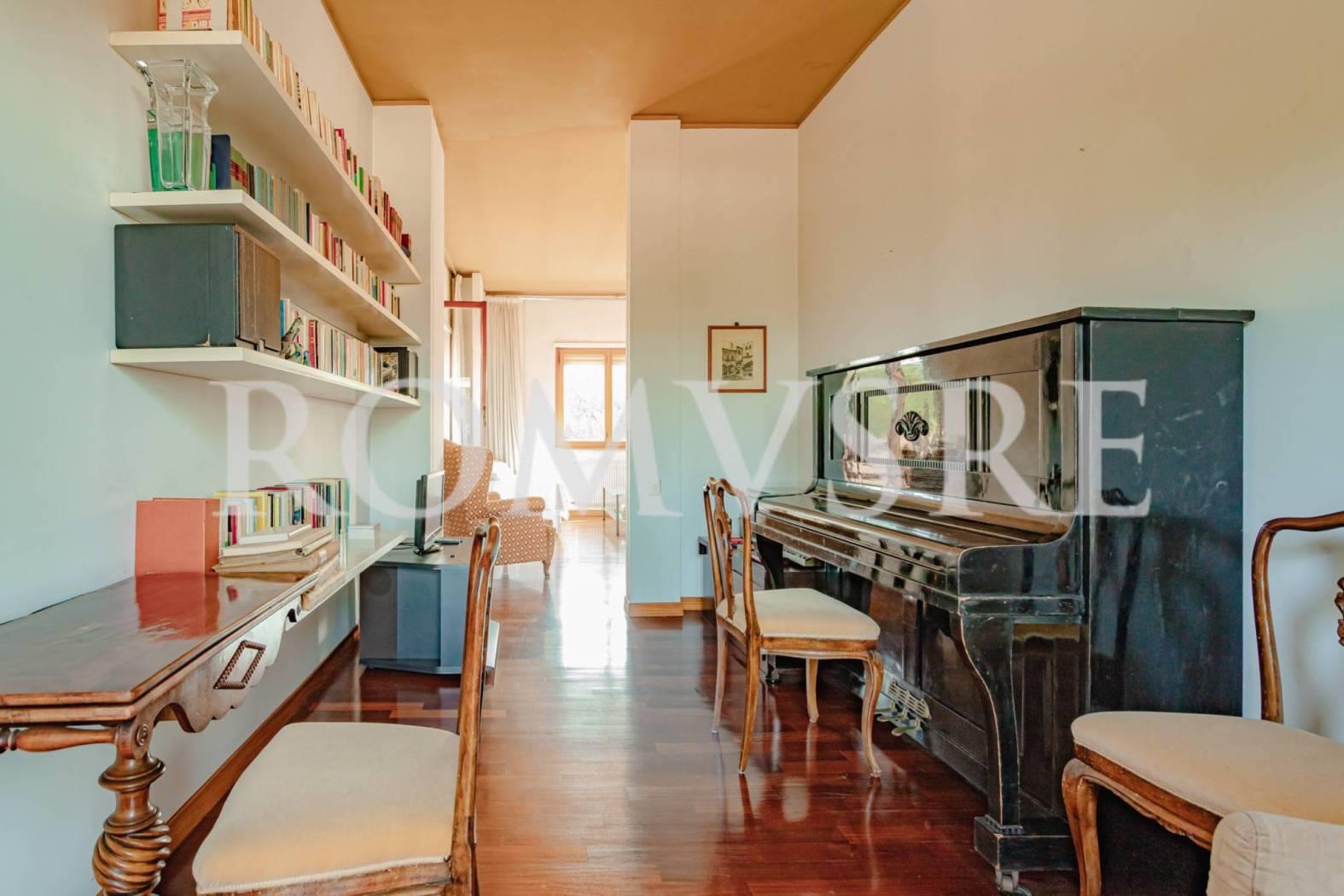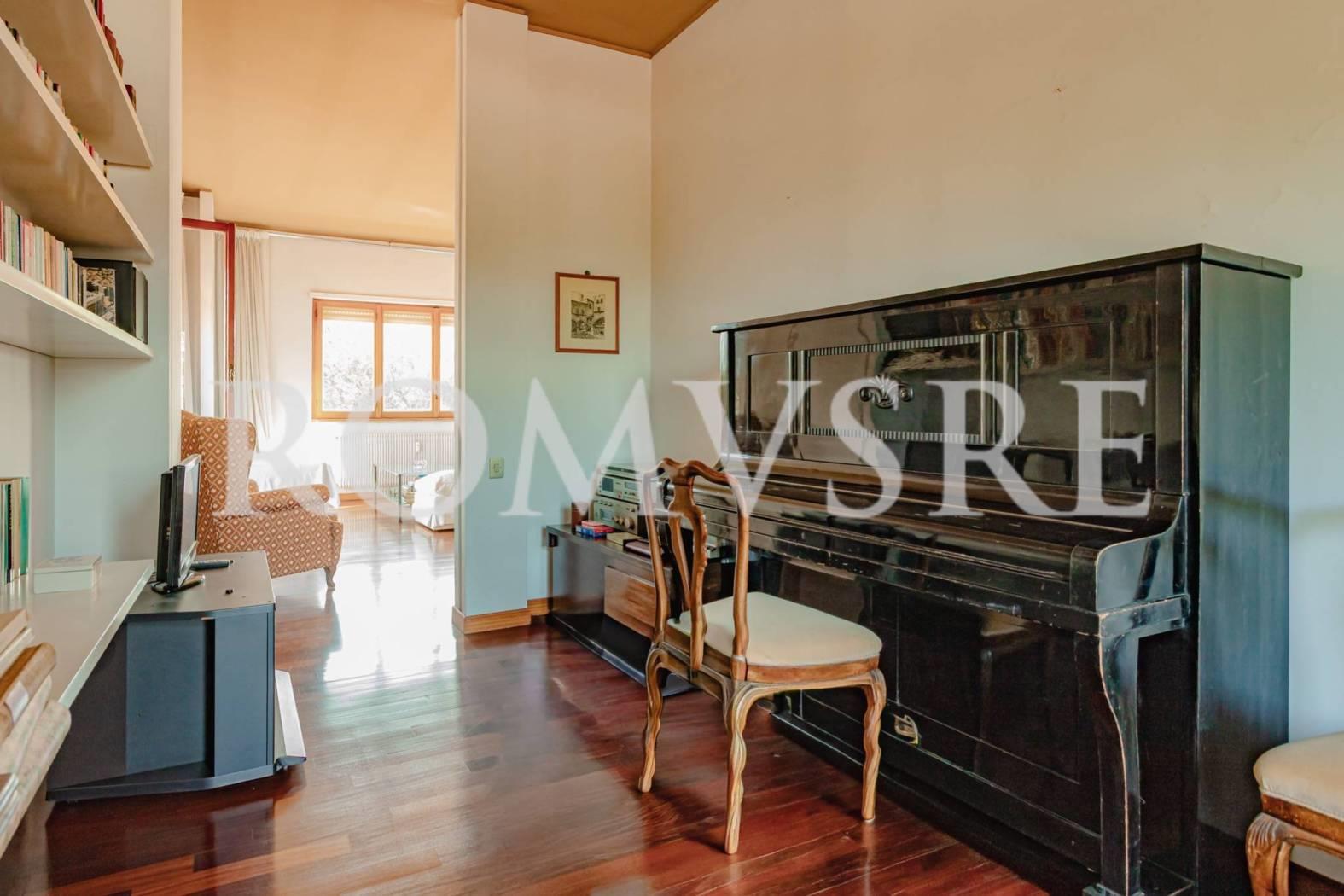 L’Attico in vendita a Roma Eur, nel quartiere Mostacciano, è posto al 5° piano di uno stabile signorile restaurato del 1974 in intonaco di 5, dotato di un ottimo servizio di portineria, ascensore e vasto parco comune.