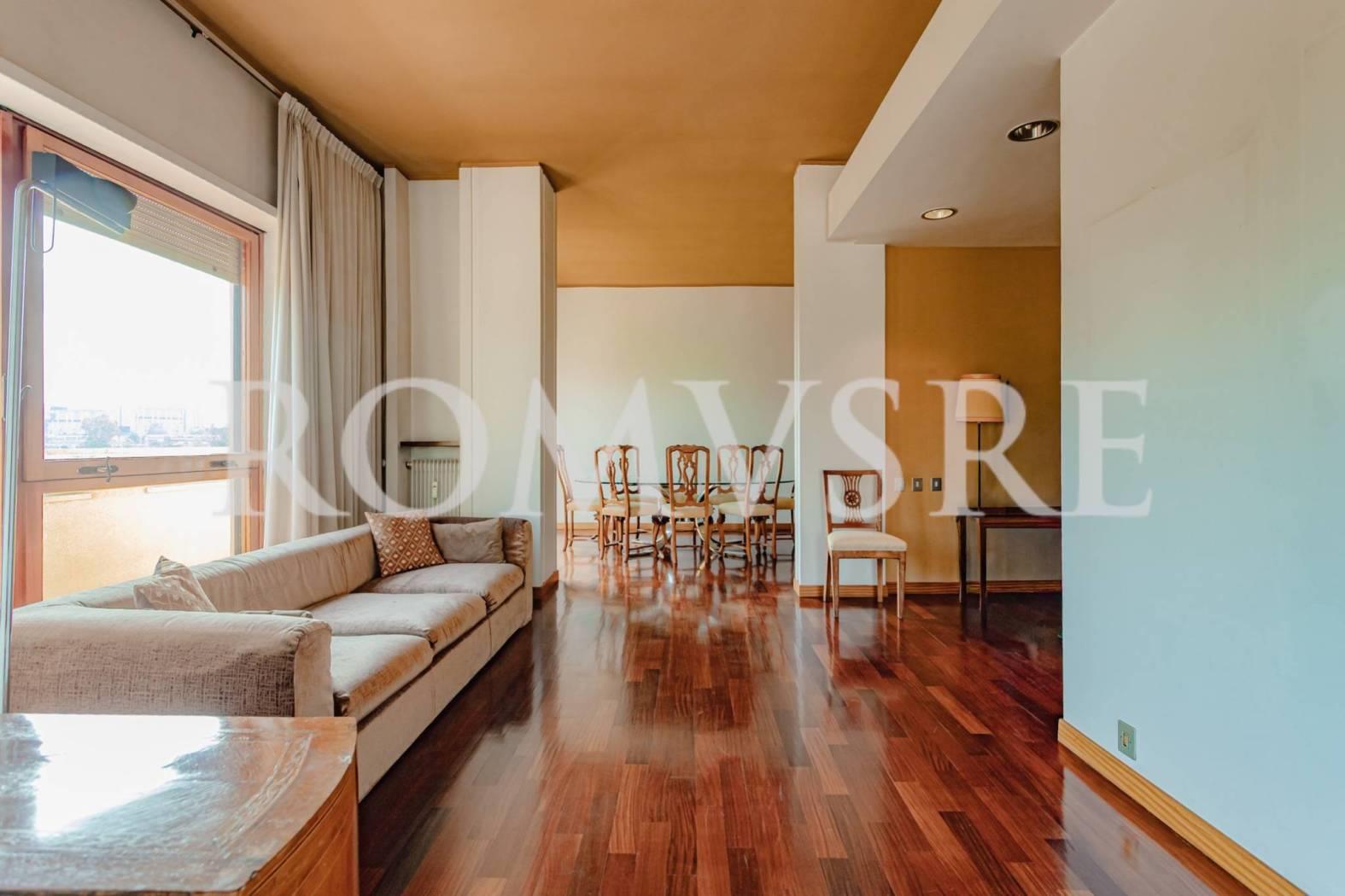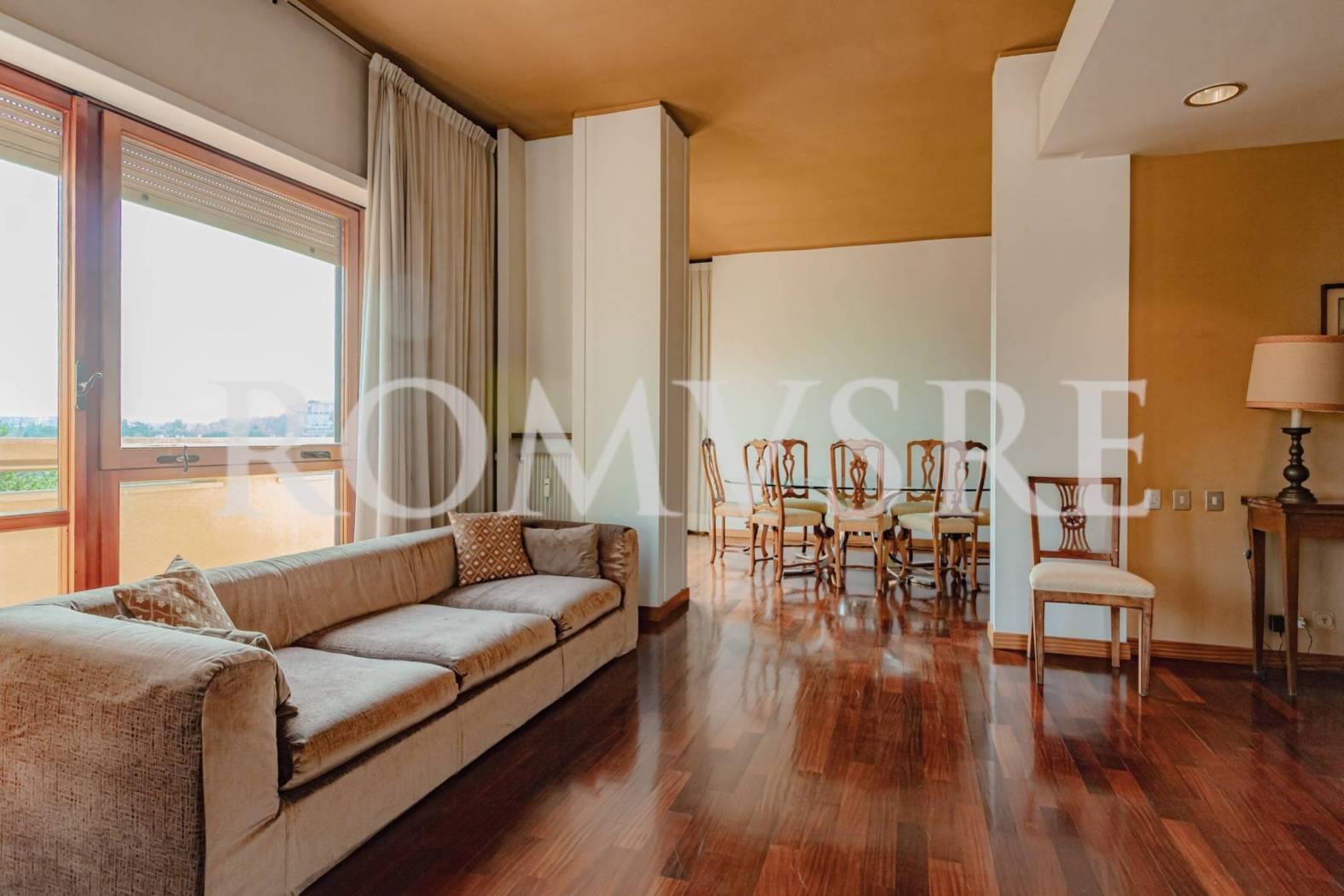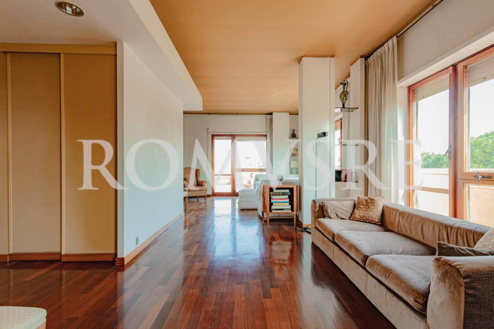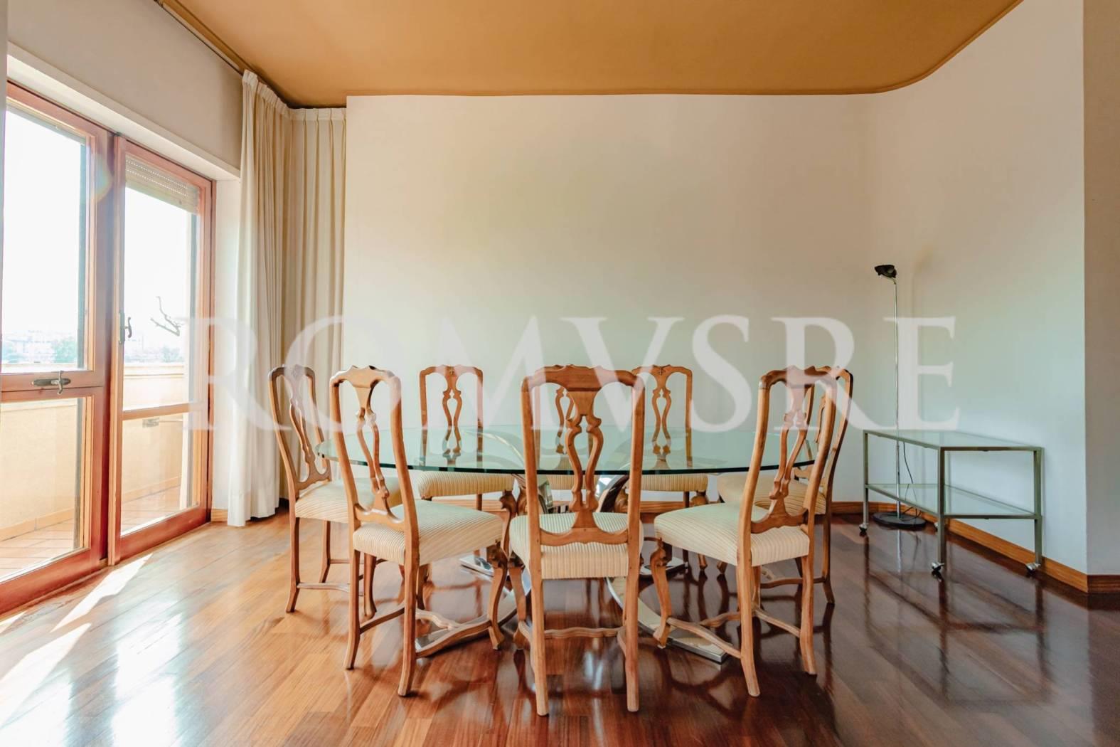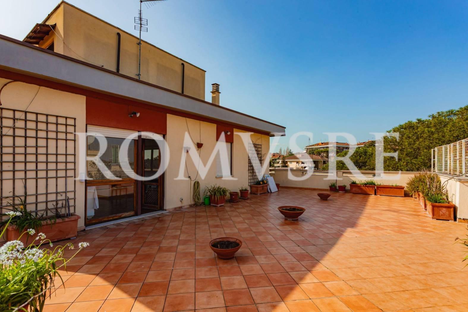 Attico in vendita a Roma, Mostacciano adiacente Eur, Via Domenico Jachino, ROMUS RE ha il piacere di proporre un appartamento divisibile di 175 mq ca con altezza dei soffitti a 3 mt, dotato di due ingressi distinti e unici al piano, da ristrutturare, con una magnifica tripla esposizione, composto da: ingresso con comodo guardaroba, salone triplo con diversi accessi ad un bellissimo terrazzo perimetrale e per buona parte vivibile di 100 mq ca recentemente ripavimentato con vista panoramica sull’Eur, i castelli e sul grande parco condominiale, sala da pranzo, cucina abitabile con accesso al terrazzo, nella zona notte troviamo un disimpegno con armadio a muro, 3 camere da letto di cui due con accesso al terrazzo, la camera principale fornita da ampi armadi a muro e bagno en suite con doccia e finestra, secondo bagno con vasca e finestra, un box auto di 22 mq ca raggiungibile con l’ascensore completa l’offerta.